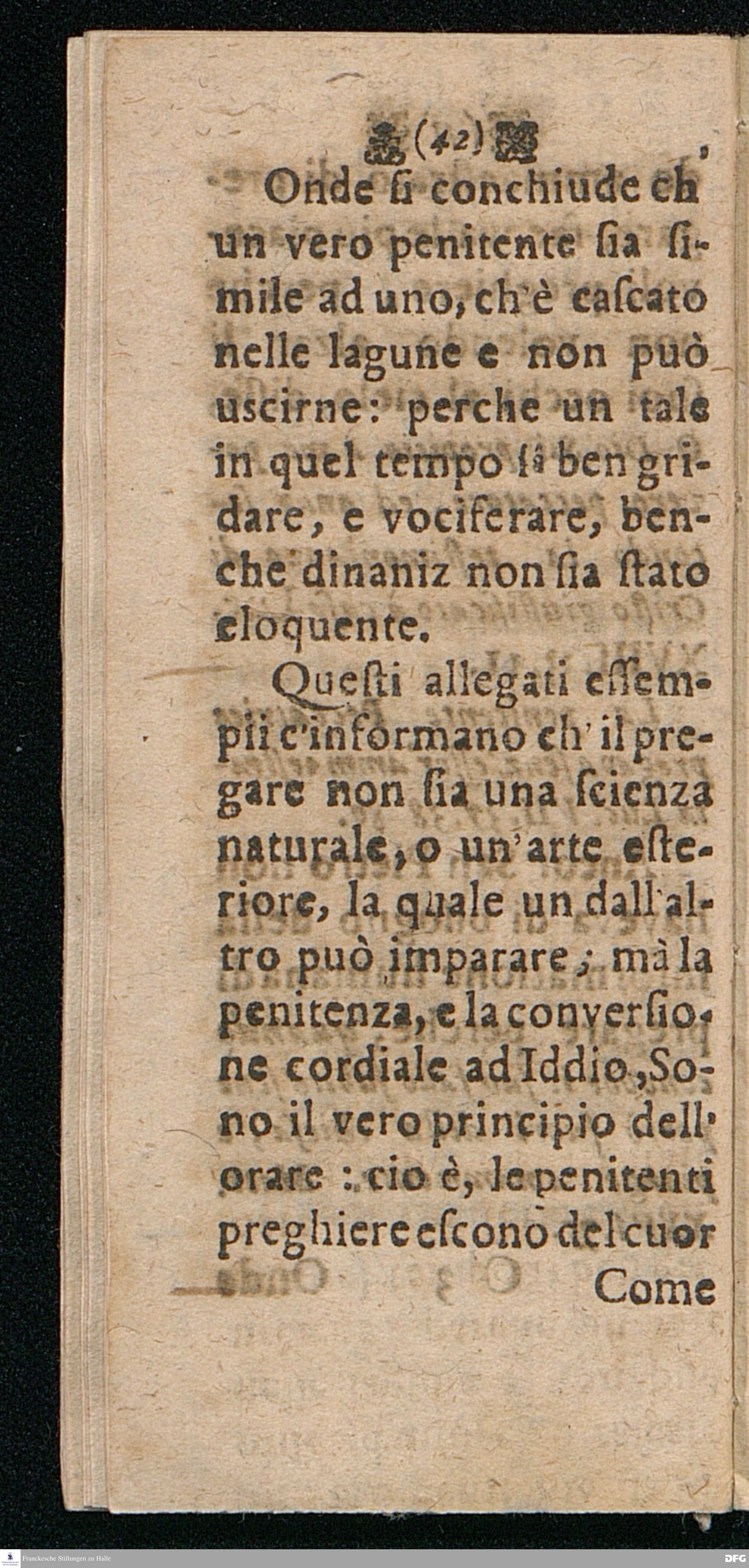 UTILISSIMA DOTTRINA Di bene e piace volmente pregare, Distinta in quattordici Paragrafi ripieni di belle Sentenze e Proverbi della Sacra Scrittura, dell'Evangelio, e de Salmi, Coll'aggiunta delle Preghiere Mattutine e Vepertine, Operate in lingua Todesca dal Molto Reverendo e Dottiss. Sign. Il Signore M. AVGVST. HERM. FRANCHIO, della Lingua Gre. & Orient. P.P. e Pastore in Glauchen vigilantissimo, hora transportata nella proprietà dell' Idioma Toscano all'uso di qualfisa cristiano amatore di Dio e della lingua Italiana dal M. Giorg. Franc. Ludovici, alle proprie Spese Halla