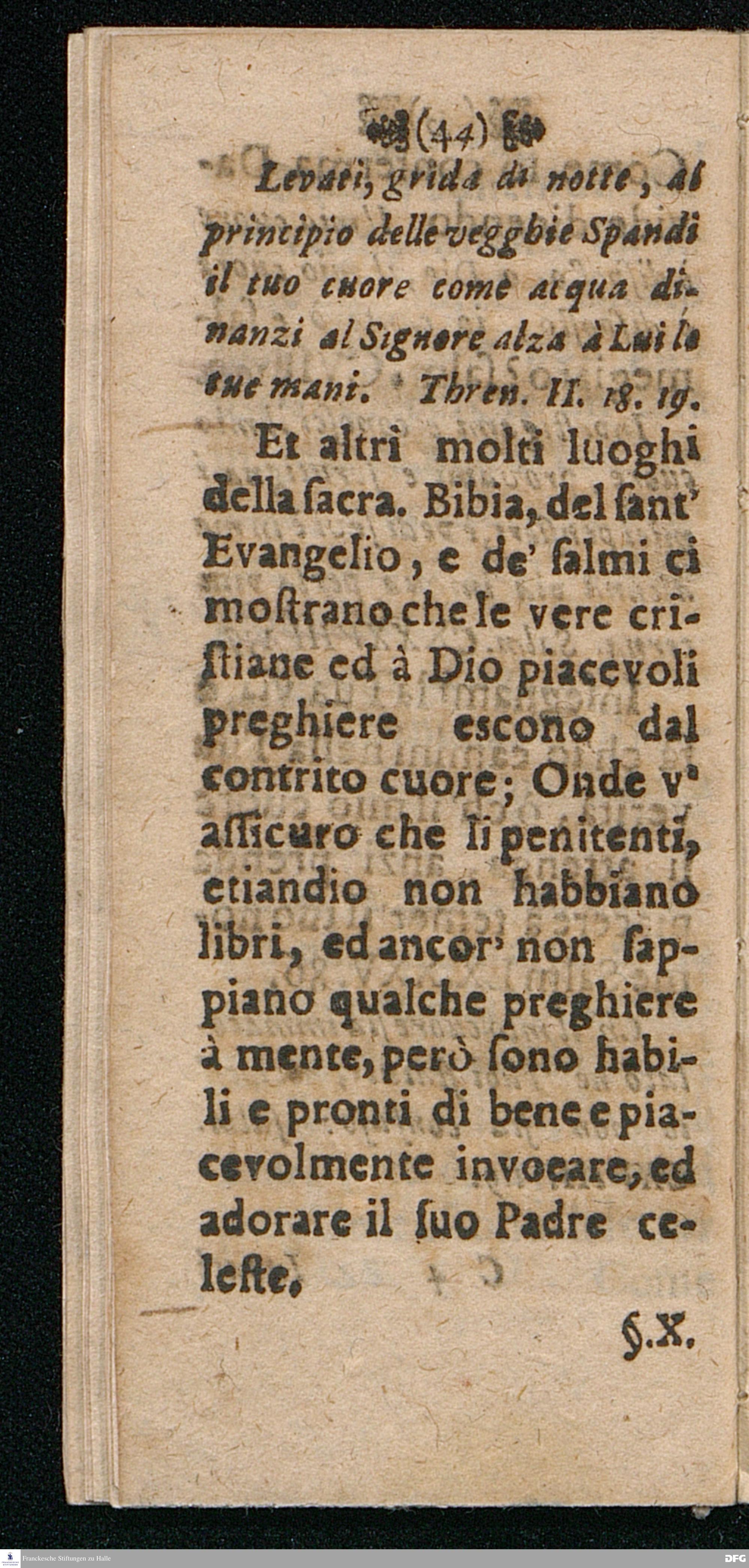UTILISSIMA DOTTRINA Di bene e piace volmente pregare, Distinta in quattordici Paragrafi ripieni di belle Sentenze e Proverbi della Sacra Scrittura, dell'Evangelio, e de Salmi, Coll'aggiunta delle Preghiere Mattutine e Vepertine, Operate in lingua Todesca dal Molto Reverendo e Dottiss. Sign. Il Signore M. AVGVST. HERM. FRANCHIO, della Lingua Gre. & Orient. P.P. e Pastore in Glauchen vigilantissimo, hora transportata nella proprietà dell' Idioma Toscano all'uso di qualfisa cristiano amatore di Dio e della lingua Italiana dal M. Giorg. Franc. Ludovici, alle proprie Spese Halla
