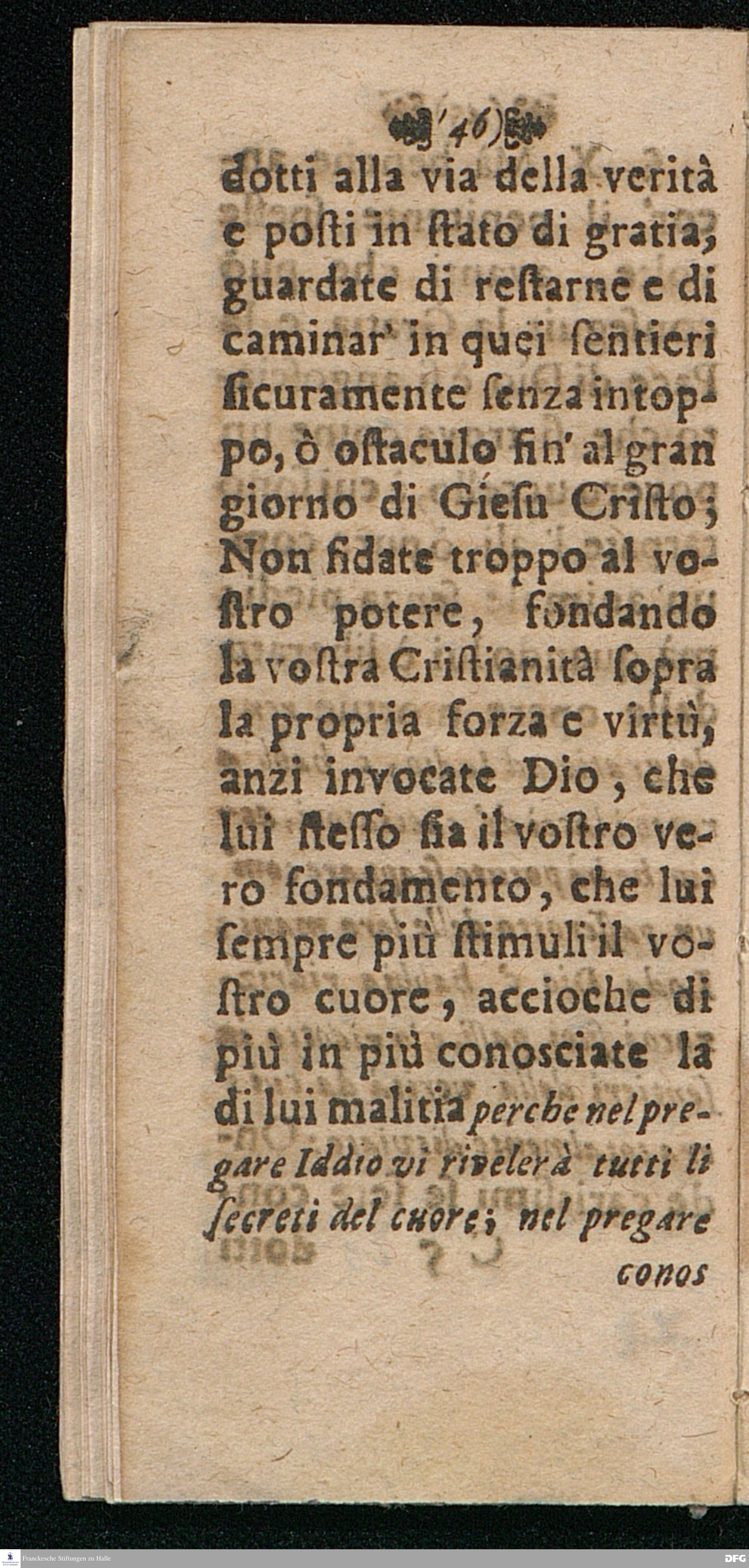 UTILISSIMA DOTTRINA Di bene e piace volmente pregare, Distinta in quattordici Paragrafi ripieni di belle Sentenze e Proverbi della Sacra Scrittura, dell'Evangelio, e de Salmi, Coll'aggiunta delle Preghiere Mattutine e Vepertine, Operate in lingua Todesca dal Molto Reverendo e Dottiss. Sign. Il Signore M. AVGVST. HERM. FRANCHIO, della Lingua Gre. & Orient. P.P. e Pastore in Glauchen vigilantissimo, hora transportata nella proprietà dell' Idioma Toscano all'uso di qualfisa cristiano amatore di Dio e della lingua Italiana dal M. Giorg. Franc. Ludovici, alle proprie Spese Halla