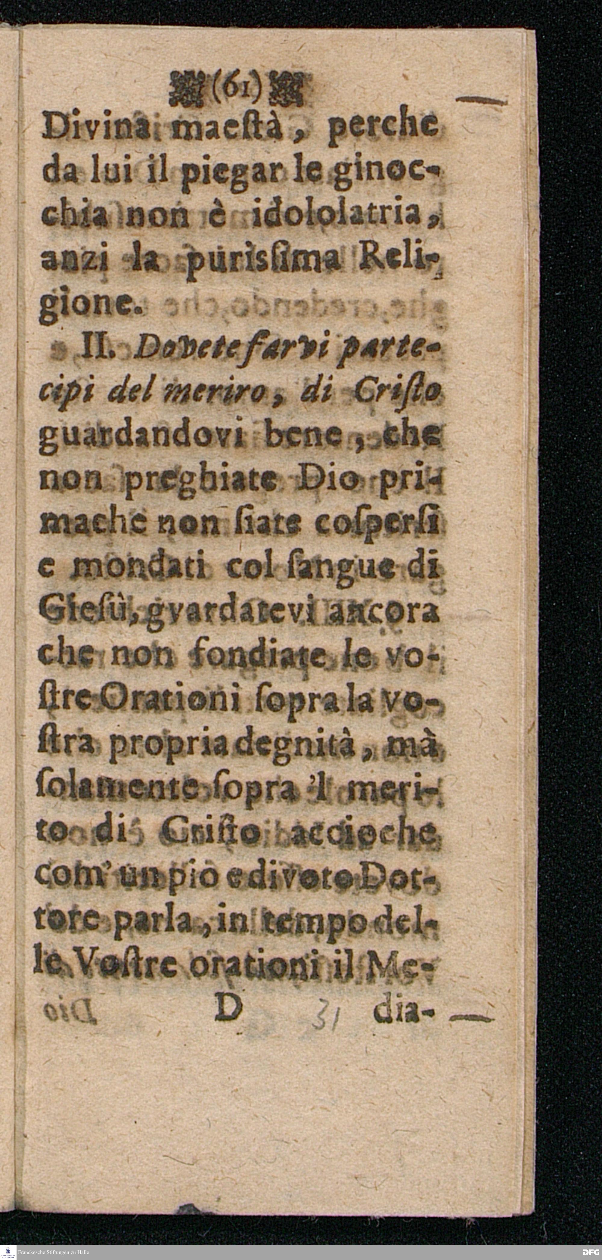 UTILISSIMA DOTTRINA Di bene e piace volmente pregare, Distinta in quattordici Paragrafi ripieni di belle Sentenze e Proverbi della Sacra Scrittura, dell'Evangelio, e de Salmi, Coll'aggiunta delle Preghiere Mattutine e Vepertine, Operate in lingua Todesca dal Molto Reverendo e Dottiss. Sign. Il Signore M. AVGVST. HERM. FRANCHIO, della Lingua Gre. & Orient. P.P. e Pastore in Glauchen vigilantissimo, hora transportata nella proprietà dell' Idioma Toscano all'uso di qualfisa cristiano amatore di Dio e della lingua Italiana dal M. Giorg. Franc. Ludovici, alle proprie Spese Halla