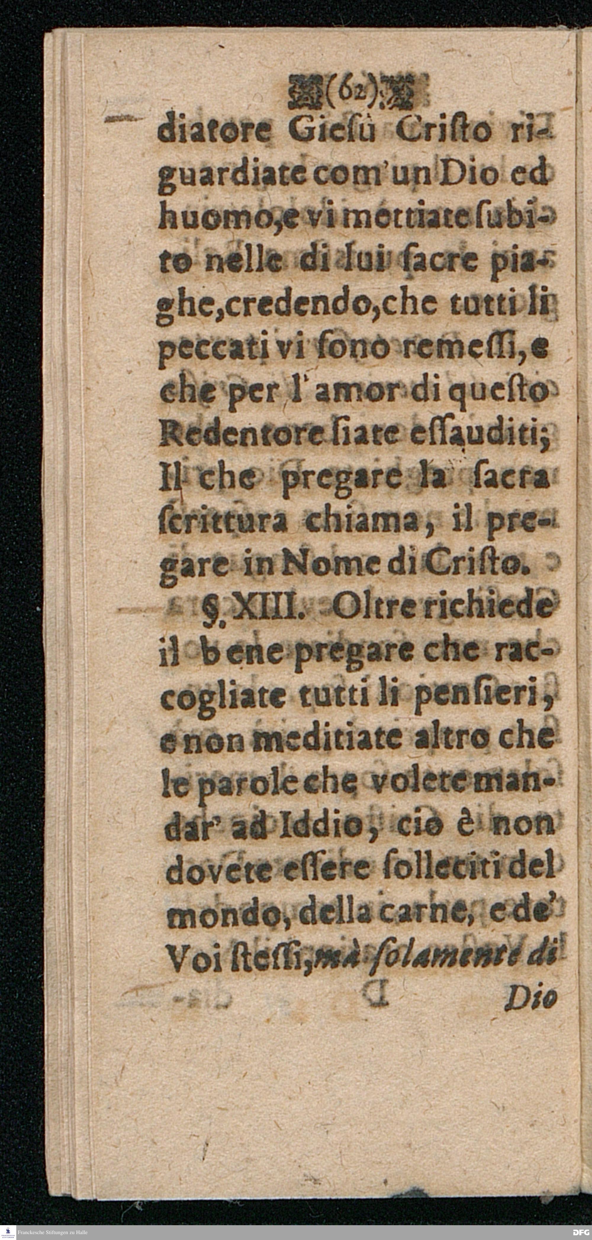 UTILISSIMA DOTTRINA Di bene e piace volmente pregare, Distinta in quattordici Paragrafi ripieni di belle Sentenze e Proverbi della Sacra Scrittura, dell'Evangelio, e de Salmi, Coll'aggiunta delle Preghiere Mattutine e Vepertine, Operate in lingua Todesca dal Molto Reverendo e Dottiss. Sign. Il Signore M. AVGVST. HERM. FRANCHIO, della Lingua Gre. & Orient. P.P. e Pastore in Glauchen vigilantissimo, hora transportata nella proprietà dell' Idioma Toscano all'uso di qualfisa cristiano amatore di Dio e della lingua Italiana dal M. Giorg. Franc. Ludovici, alle proprie Spese Halla