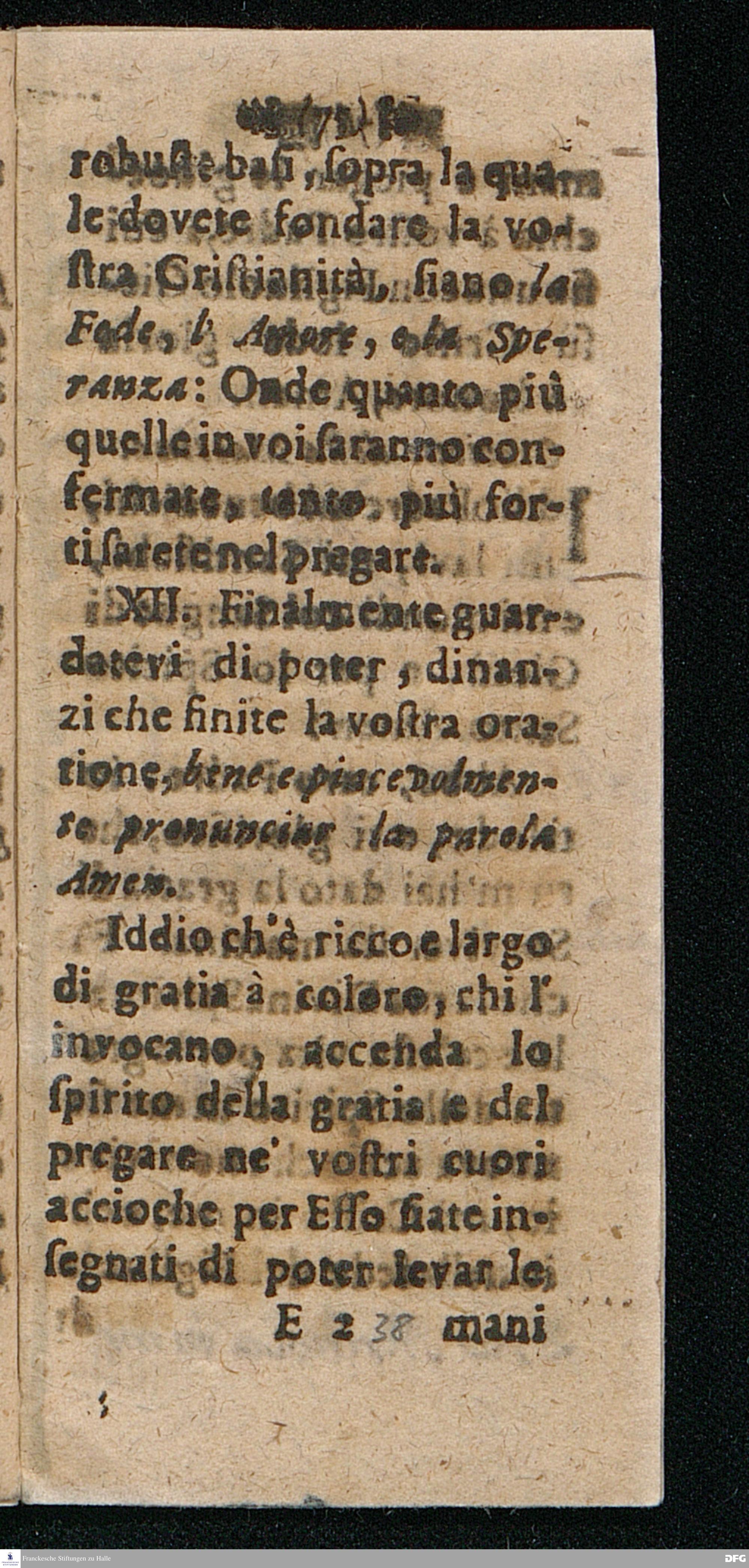 UTILISSIMA DOTTRINA Di bene e piace volmente pregare, Distinta in quattordici Paragrafi ripieni di belle Sentenze e Proverbi della Sacra Scrittura, dell'Evangelio, e de Salmi, Coll'aggiunta delle Preghiere Mattutine e Vepertine, Operate in lingua Todesca dal Molto Reverendo e Dottiss. Sign. Il Signore M. AVGVST. HERM. FRANCHIO, della Lingua Gre. & Orient. P.P. e Pastore in Glauchen vigilantissimo, hora transportata nella proprietà dell' Idioma Toscano all'uso di qualfisa cristiano amatore di Dio e della lingua Italiana dal M. Giorg. Franc. Ludovici, alle proprie Spese Halla