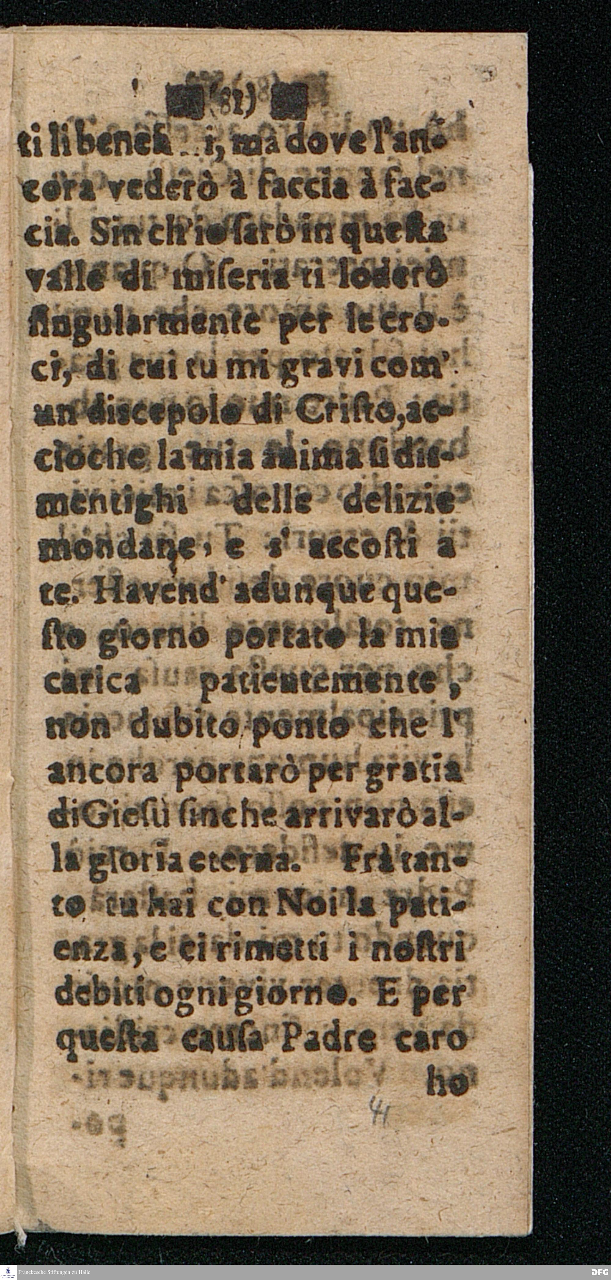 UTILISSIMA DOTTRINA Di bene e piace volmente pregare, Distinta in quattordici Paragrafi ripieni di belle Sentenze e Proverbi della Sacra Scrittura, dell'Evangelio, e de Salmi, Coll'aggiunta delle Preghiere Mattutine e Vepertine, Operate in lingua Todesca dal Molto Reverendo e Dottiss. Sign. Il Signore M. AVGVST. HERM. FRANCHIO, della Lingua Gre. & Orient. P.P. e Pastore in Glauchen vigilantissimo, hora transportata nella proprietà dell' Idioma Toscano all'uso di qualfisa cristiano amatore di Dio e della lingua Italiana dal M. Giorg. Franc. Ludovici, alle proprie Spese Halla