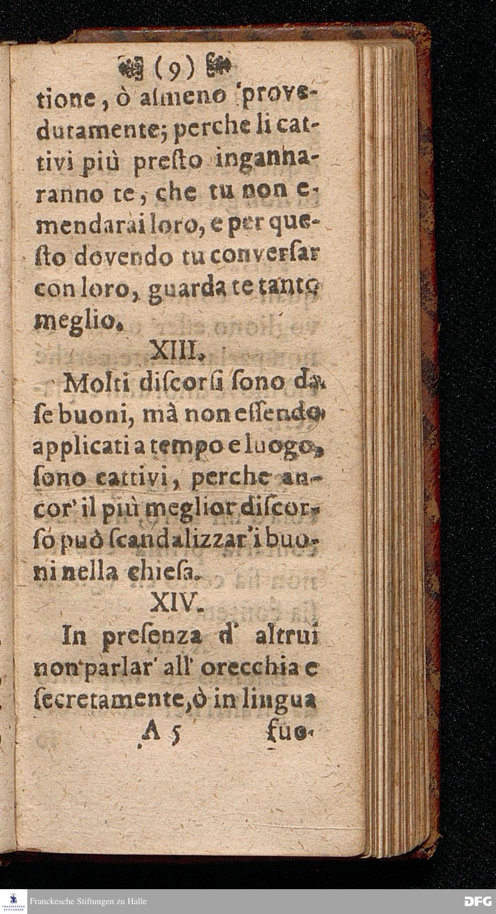 REGOLE del vivere Conform' alle Scritrure [!] Sacre, date in luce primo nella Lingua Tedesca dal Mol. Rev. e Dot. Sig. M. AUG. HERM. FRANCHIO, P.P. di Teol.Filos. e Ling. Orient. e Paroco vigilantissimo. Poi tradotte nella Lingua Toscana da M. GIOR. FRAN. LUDOVICI, L.P. coll' aggiunta della Giustitia dell' huomo, e d'alcune Preghire. In Halla Appresso Giov. Giac. Schitz. [!]. 1699