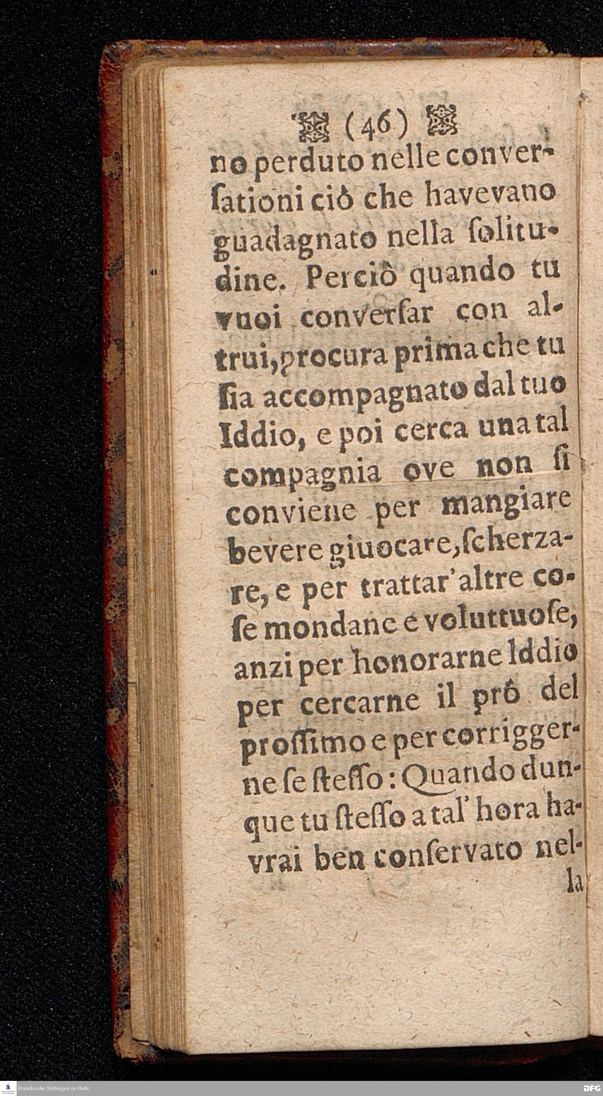 REGOLE del vivere Conform' alle Scritrure [!] Sacre, date in luce primo nella Lingua Tedesca dal Mol. Rev. e Dot. Sig. M. AUG. HERM. FRANCHIO, P.P. di Teol.Filos. e Ling. Orient. e Paroco vigilantissimo. Poi tradotte nella Lingua Toscana da M. GIOR. FRAN. LUDOVICI, L.P. coll' aggiunta della Giustitia dell' huomo, e d'alcune Preghire. In Halla Appresso Giov. Giac. Schitz. [!]. 1699