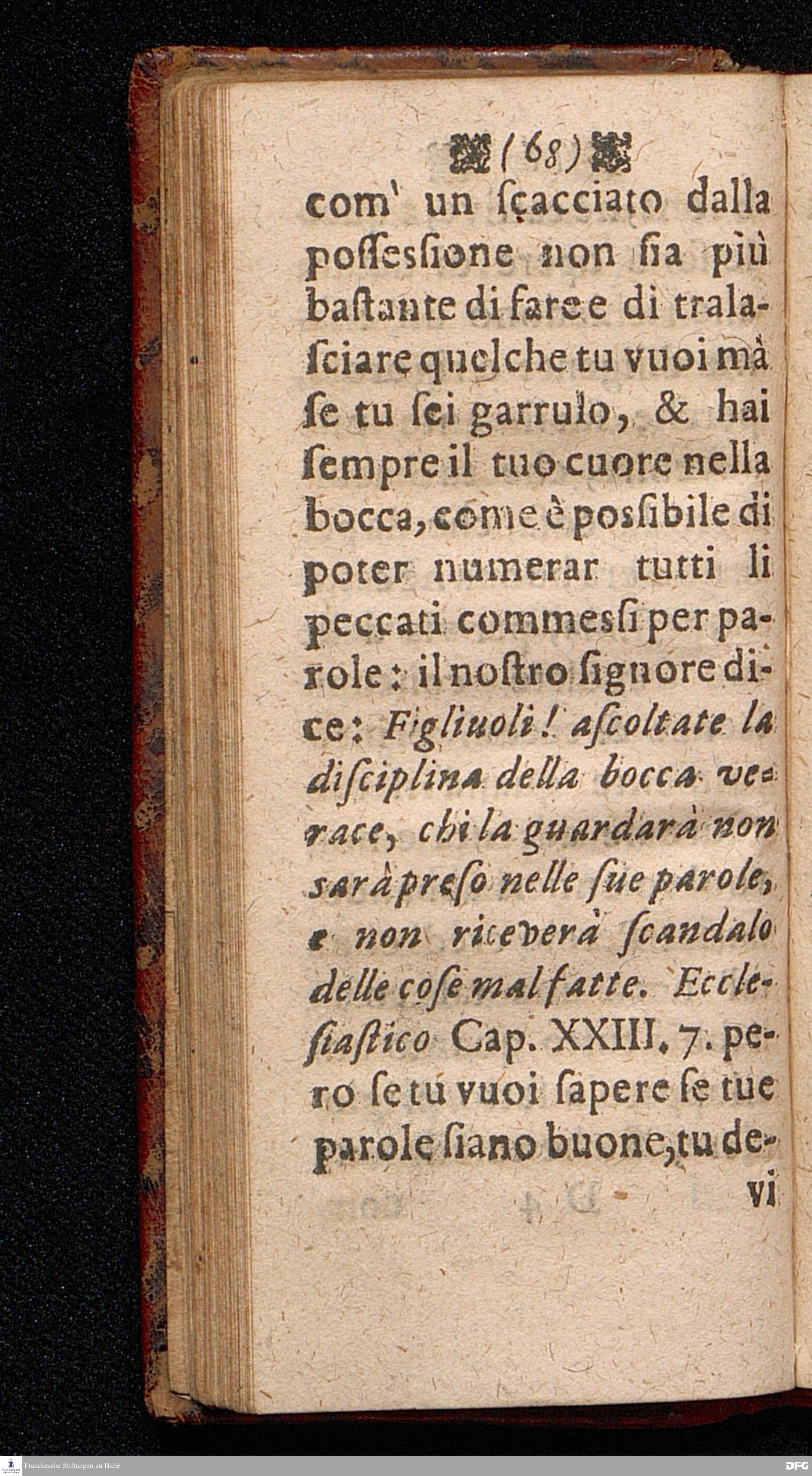 REGOLE del vivere Conform' alle Scritrure [!] Sacre, date in luce primo nella Lingua Tedesca dal Mol. Rev. e Dot. Sig. M. AUG. HERM. FRANCHIO, P.P. di Teol.Filos. e Ling. Orient. e Paroco vigilantissimo. Poi tradotte nella Lingua Toscana da M. GIOR. FRAN. LUDOVICI, L.P. coll' aggiunta della Giustitia dell' huomo, e d'alcune Preghire. In Halla Appresso Giov. Giac. Schitz. [!]. 1699