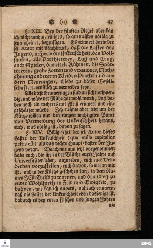 Einige Regeln und Erinnerungen Zur Christlichen und gebührlichen Verhaltung auf der Universität, von dem Seligen Herrn Veit Ludwig von Seckendorf, Weyland des H.Römischen Reichs unmittelbarer Ritter, Herrn auf Ober=Zenna und Meuselwitz, Churfürstl. Brandenburgischen Geheimden Rath, und der Friedrichs=Universität zu Halle Cantzlern, Zween seiner Vettern Anno 1689 ertheilet, Nun aber Zum besondern Nutzen der Studirenden, nicht nur derjenigen, die Theologiam, sondern auch derer, die Jura oder andere zum gemeinen Leben gehörige Wissenschaften und Künste zu erlernen, auf Universitäten leben, Mit einer Anrede an dieselben ans Licht gegeben von August Hermann Francken, S.Theol.Prof.& Past. zu S.Ulrich und des Gymn.Schol. Andere Auflage. HALLE, gedruckt und zu finden im Wäysen=Hause 1737.