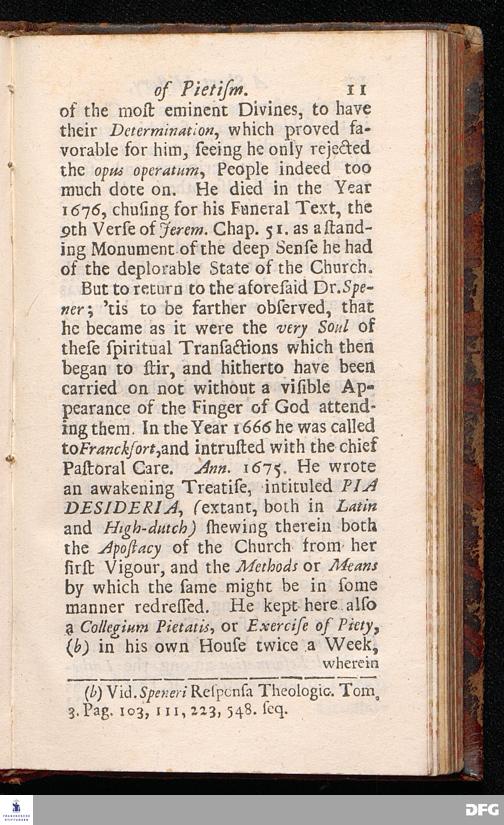 Pietas Hallensis: OR, AN ABSTRACT OF THE Marvellous Footsteps OF Divine Providence, In the Building of a very large HOSPITAL, Or rather, a SPACIOUS COLLEGE, For Charitable and Excellent Uses. And in the Maintaining of many ORPHANS & other POOR PEOPLE therein; At Glaucha near Hall, In the Dominions of the K.of Prussia. Related by the Reverend Augustus Hermannuns Franck[!], Professor of Divinity, and Minister of Glaucha aforesaid. With a PREFACE written by JOSIAH WOODWARD, D.D. And Recommended by some Eminent Divines of the Church of England. To which is added A short History of PIETISM. The Second Edition enlarged. LONDON, Printed and Sold by J.Downing in Bartholomew-Close near West-Smithfield, 1707