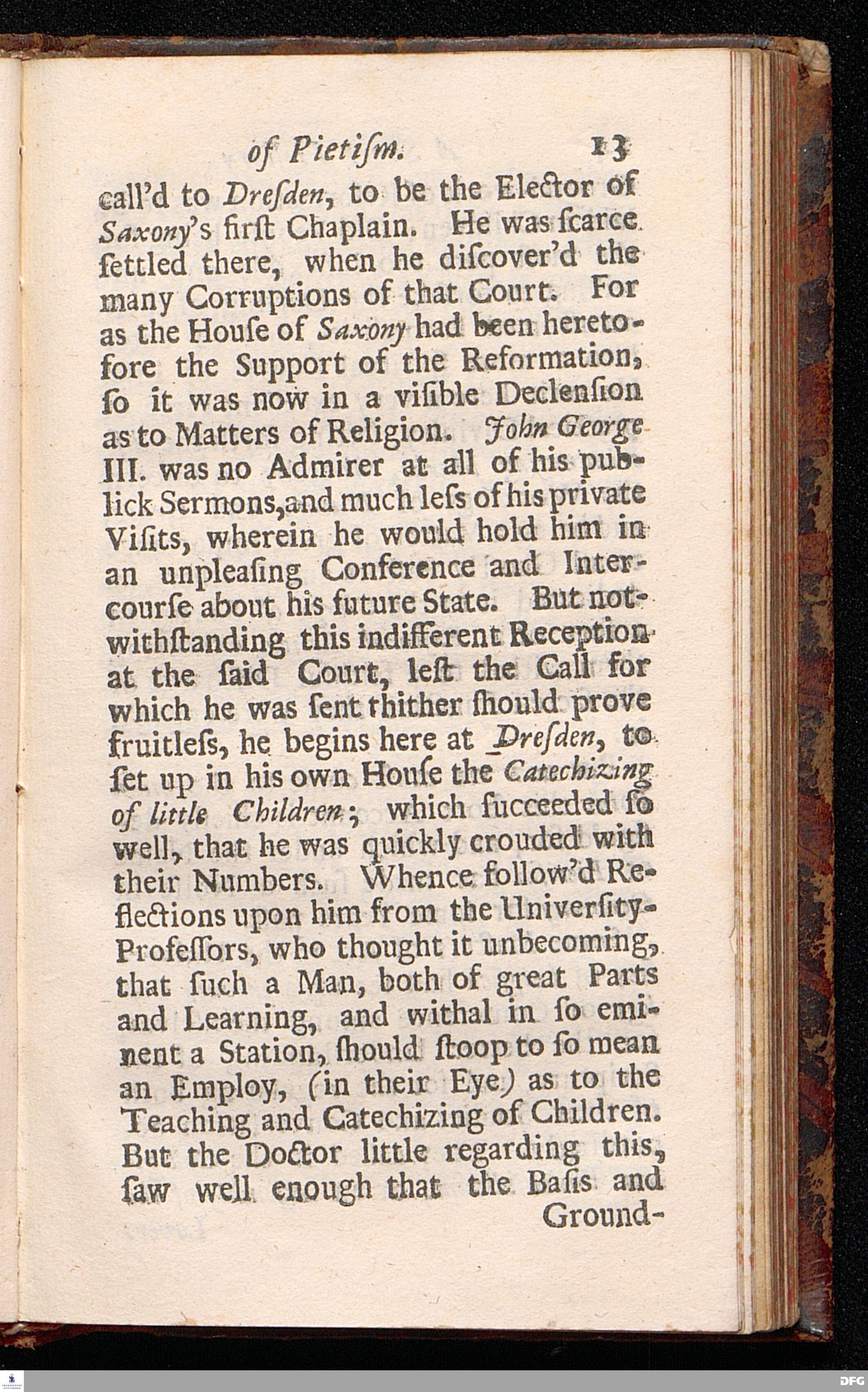 Pietas Hallensis: OR, AN ABSTRACT OF THE Marvellous Footsteps OF Divine Providence, In the Building of a very large HOSPITAL, Or rather, a SPACIOUS COLLEGE, For Charitable and Excellent Uses. And in the Maintaining of many ORPHANS & other POOR PEOPLE therein; At Glaucha near Hall, In the Dominions of the K.of Prussia. Related by the Reverend Augustus Hermannuns Franck[!], Professor of Divinity, and Minister of Glaucha aforesaid. With a PREFACE written by JOSIAH WOODWARD, D.D. And Recommended by some Eminent Divines of the Church of England. To which is added A short History of PIETISM. The Second Edition enlarged. LONDON, Printed and Sold by J.Downing in Bartholomew-Close near West-Smithfield, 1707