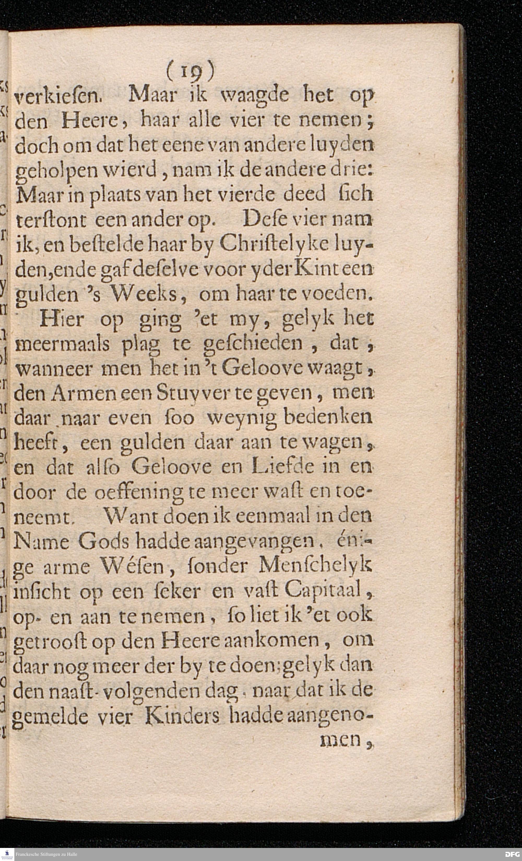 KORTE BESCHRYVING Van het onlangs opgerechte WEES-HUYS tot HALLE In't Hertogdom Maagdenburg Hoe het selve begonnen, en tegenwoortig gestelt is: Tot Prys van Gods trouwe Voorsorg, Tot verstercking van het vertrouwen op God, En tot verwecking van ware Christelyke Liefde; In't Hoogduyts opgestelt Door AUGUST HERMAN[!] FRANCKEN, Professor in de Griexsche en Orientaalsche Spraken, ende Leeraar aldaar. Beneffens twee Attestatien voor den Collecteerder. Uit het Hoogduyts in't Hollants overgeset. t'AMSTERDAM, By Johannes Smets en Paulus Dibbits, Boekdrukkers op de Nieuwe zyts Achterburgwal, 1697
