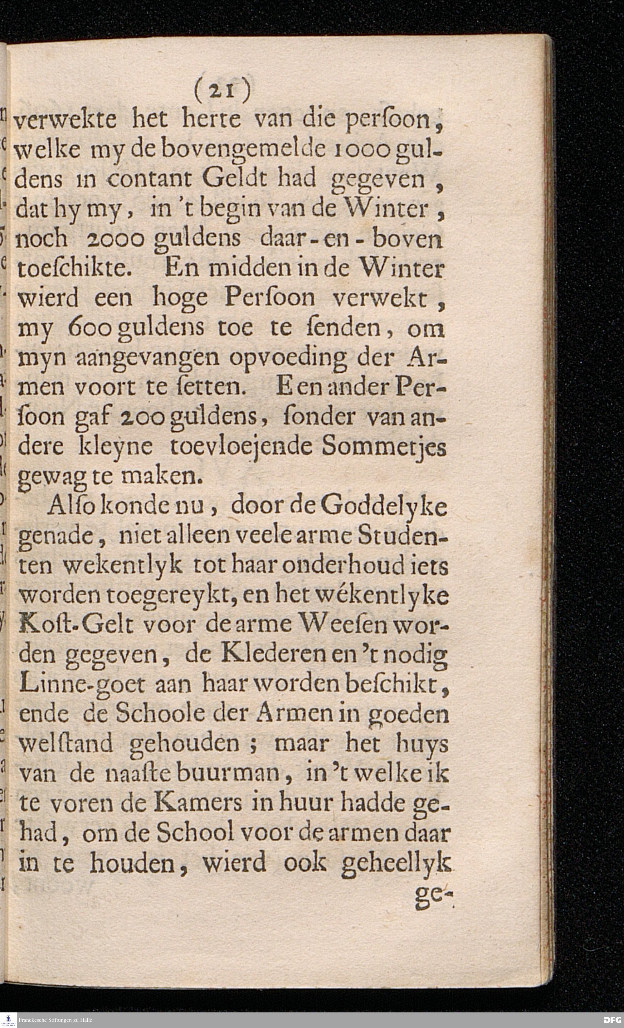 KORTE BESCHRYVING Van het onlangs opgerechte WEES-HUYS tot HALLE In't Hertogdom Maagdenburg Hoe het selve begonnen, en tegenwoortig gestelt is: Tot Prys van Gods trouwe Voorsorg, Tot verstercking van het vertrouwen op God, En tot verwecking van ware Christelyke Liefde; In't Hoogduyts opgestelt Door AUGUST HERMAN[!] FRANCKEN, Professor in de Griexsche en Orientaalsche Spraken, ende Leeraar aldaar. Beneffens twee Attestatien voor den Collecteerder. Uit het Hoogduyts in't Hollants overgeset. t'AMSTERDAM, By Johannes Smets en Paulus Dibbits, Boekdrukkers op de Nieuwe zyts Achterburgwal, 1697