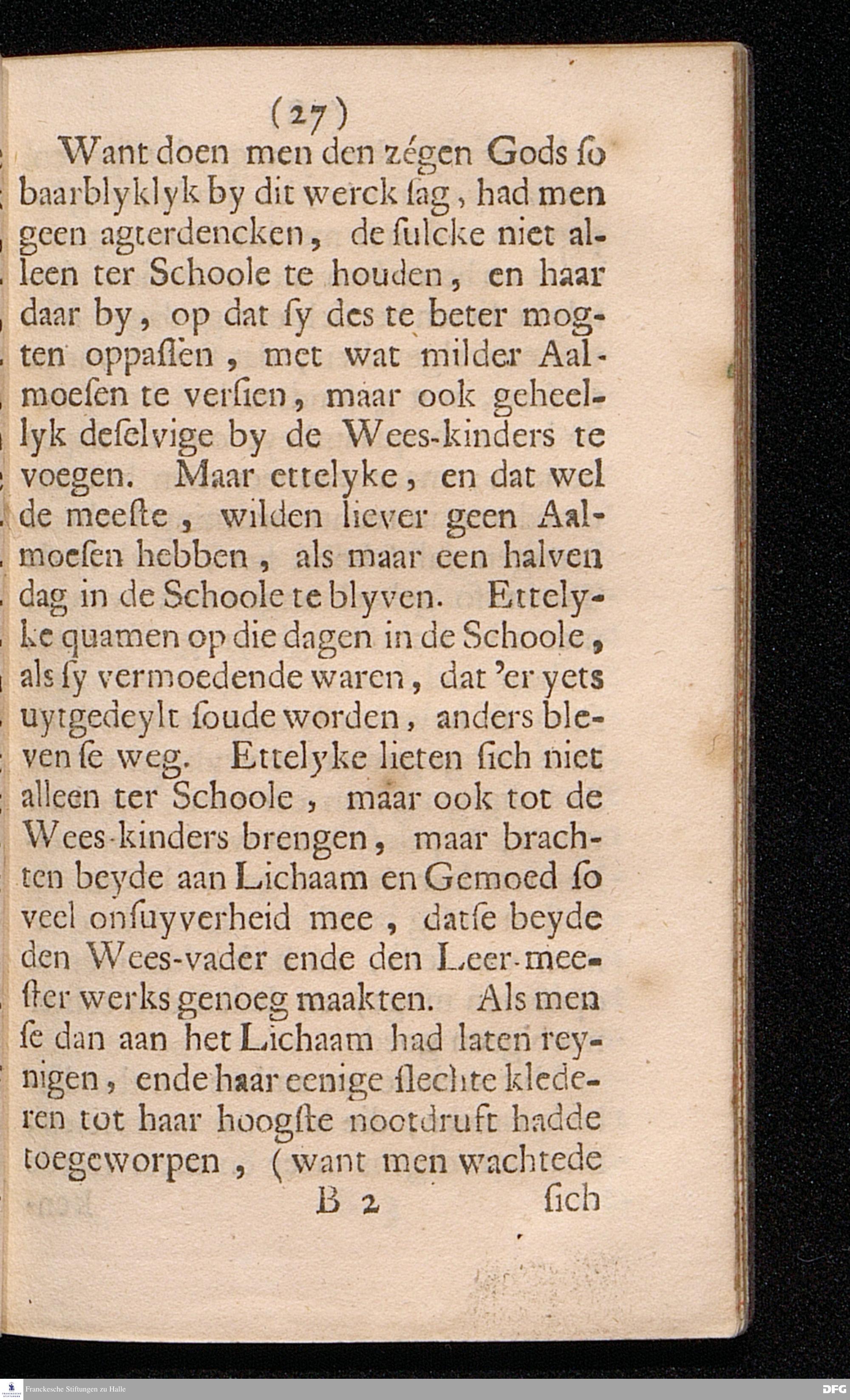 KORTE BESCHRYVING Van het onlangs opgerechte WEES-HUYS tot HALLE In't Hertogdom Maagdenburg Hoe het selve begonnen, en tegenwoortig gestelt is: Tot Prys van Gods trouwe Voorsorg, Tot verstercking van het vertrouwen op God, En tot verwecking van ware Christelyke Liefde; In't Hoogduyts opgestelt Door AUGUST HERMAN[!] FRANCKEN, Professor in de Griexsche en Orientaalsche Spraken, ende Leeraar aldaar. Beneffens twee Attestatien voor den Collecteerder. Uit het Hoogduyts in't Hollants overgeset. t'AMSTERDAM, By Johannes Smets en Paulus Dibbits, Boekdrukkers op de Nieuwe zyts Achterburgwal, 1697