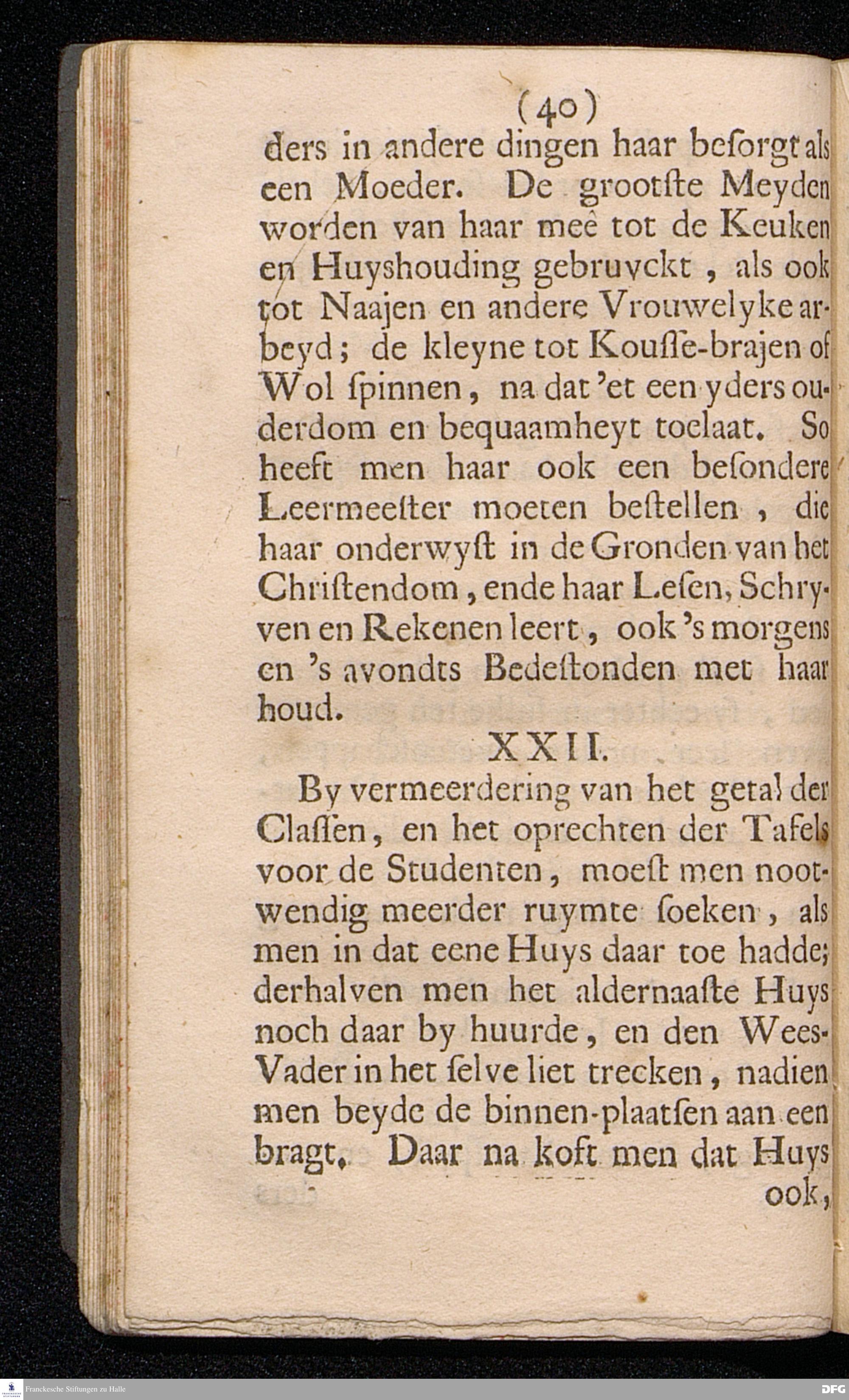 KORTE BESCHRYVING Van het onlangs opgerechte WEES-HUYS tot HALLE In't Hertogdom Maagdenburg Hoe het selve begonnen, en tegenwoortig gestelt is: Tot Prys van Gods trouwe Voorsorg, Tot verstercking van het vertrouwen op God, En tot verwecking van ware Christelyke Liefde; In't Hoogduyts opgestelt Door AUGUST HERMAN[!] FRANCKEN, Professor in de Griexsche en Orientaalsche Spraken, ende Leeraar aldaar. Beneffens twee Attestatien voor den Collecteerder. Uit het Hoogduyts in't Hollants overgeset. t'AMSTERDAM, By Johannes Smets en Paulus Dibbits, Boekdrukkers op de Nieuwe zyts Achterburgwal, 1697