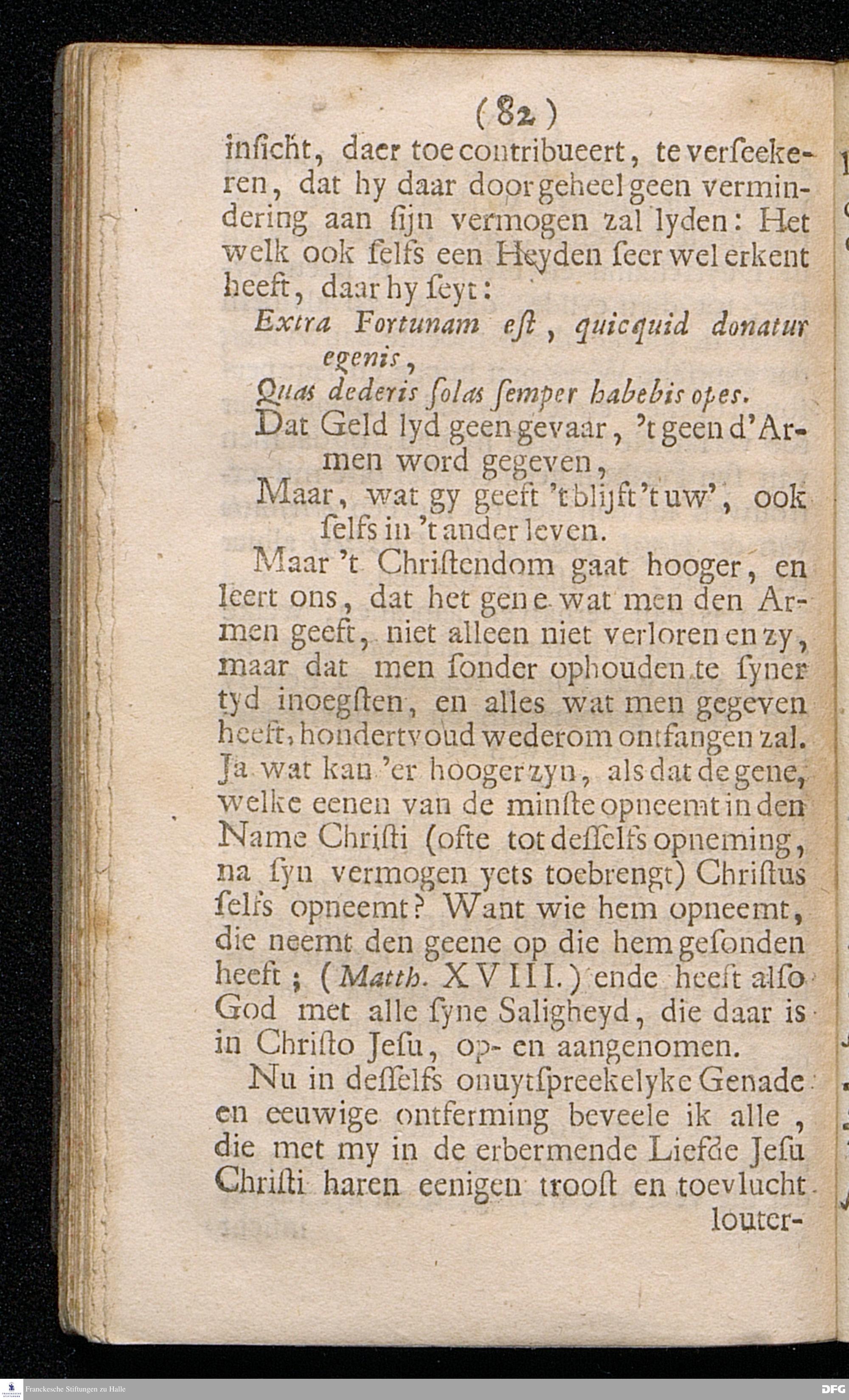 KORTE BESCHRYVING Van het onlangs opgerechte WEES-HUYS tot HALLE In't Hertogdom Maagdenburg Hoe het selve begonnen, en tegenwoortig gestelt is: Tot Prys van Gods trouwe Voorsorg, Tot verstercking van het vertrouwen op God, En tot verwecking van ware Christelyke Liefde; In't Hoogduyts opgestelt Door AUGUST HERMAN[!] FRANCKEN, Professor in de Griexsche en Orientaalsche Spraken, ende Leeraar aldaar. Beneffens twee Attestatien voor den Collecteerder. Uit het Hoogduyts in't Hollants overgeset. t'AMSTERDAM, By Johannes Smets en Paulus Dibbits, Boekdrukkers op de Nieuwe zyts Achterburgwal, 1697