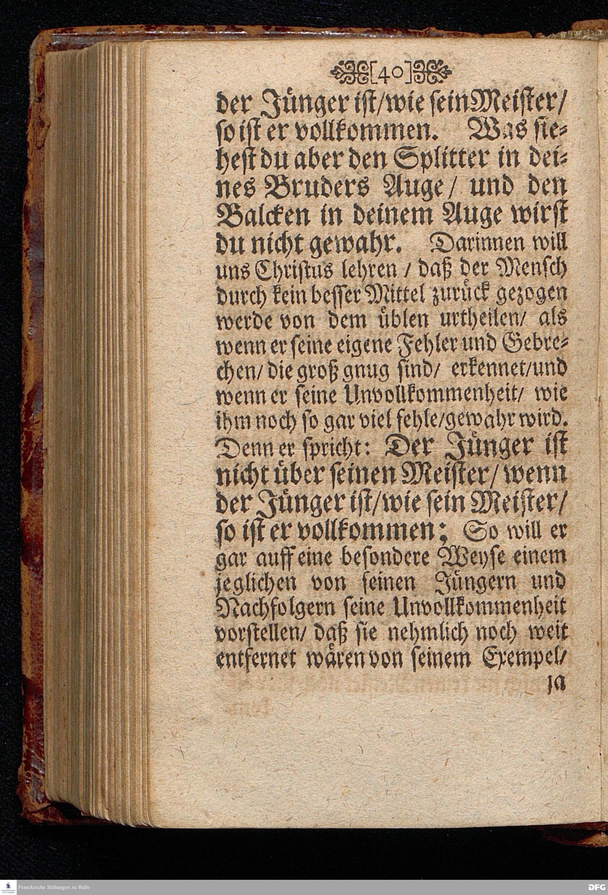 Das Gericht der Liebe über des Nächsten Gebrechen / Am 4.Sonntage nach Trinit. ANNO 1698. In einer Predigt Uber das Evangelium Luc.VI,vers.36==42. In der St.Georgen=Kirche zu Glaucha an Halle vorgestellet von M.August Hermann Francken / SS.Theol.Prof.Ord.& P.Glauch. HALLE / Gedruckt bey Johann Grunerten / Univers.Buchdr. 1701.