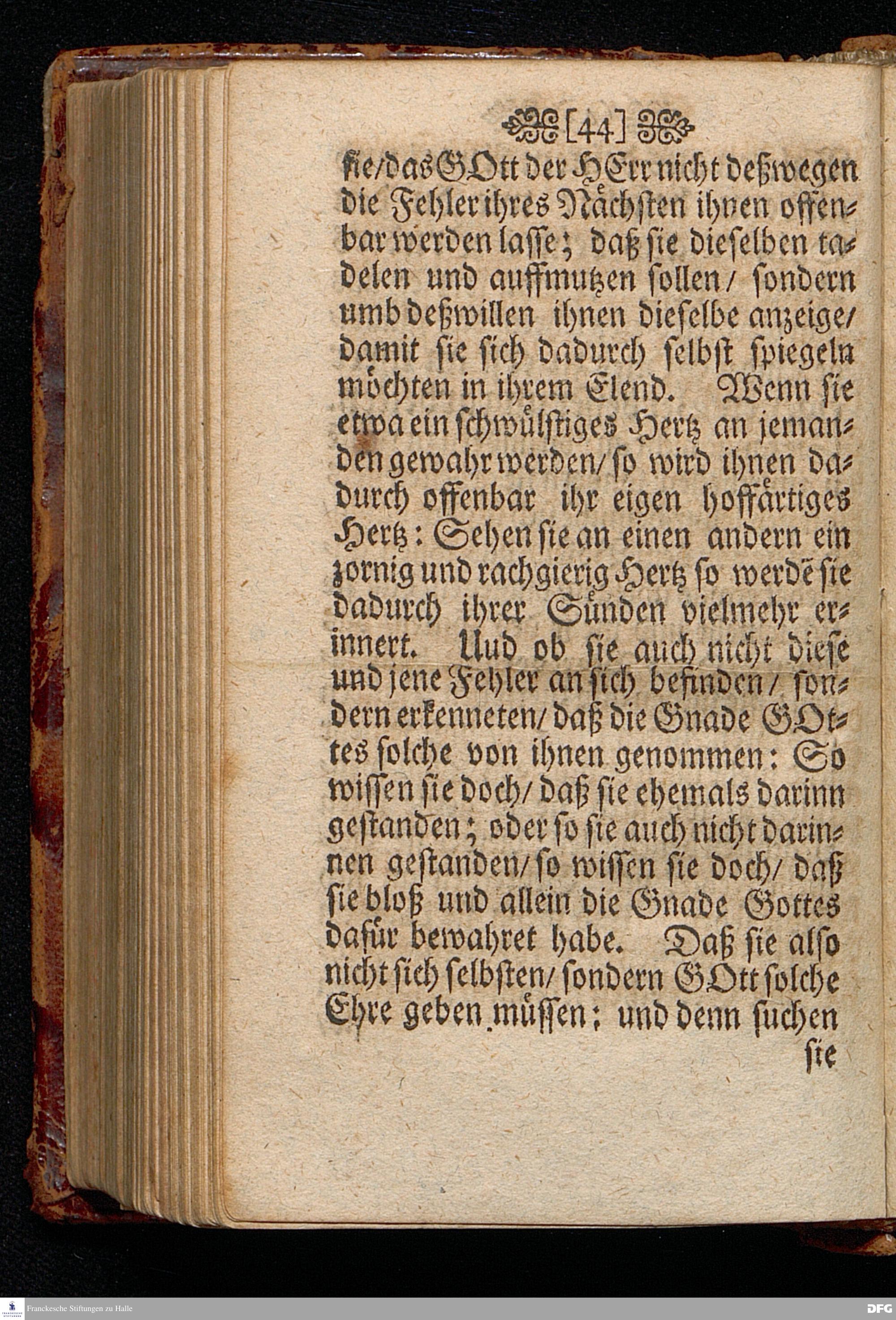 Das Gericht der Liebe über des Nächsten Gebrechen / Am 4.Sonntage nach Trinit. ANNO 1698. In einer Predigt Uber das Evangelium Luc.VI,vers.36==42. In der St.Georgen=Kirche zu Glaucha an Halle vorgestellet von M.August Hermann Francken / SS.Theol.Prof.Ord.& P.Glauch. HALLE / Gedruckt bey Johann Grunerten / Univers.Buchdr. 1701.