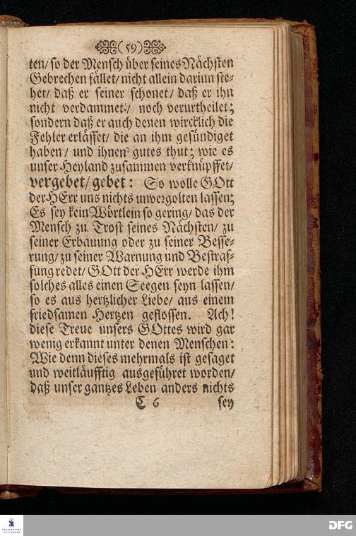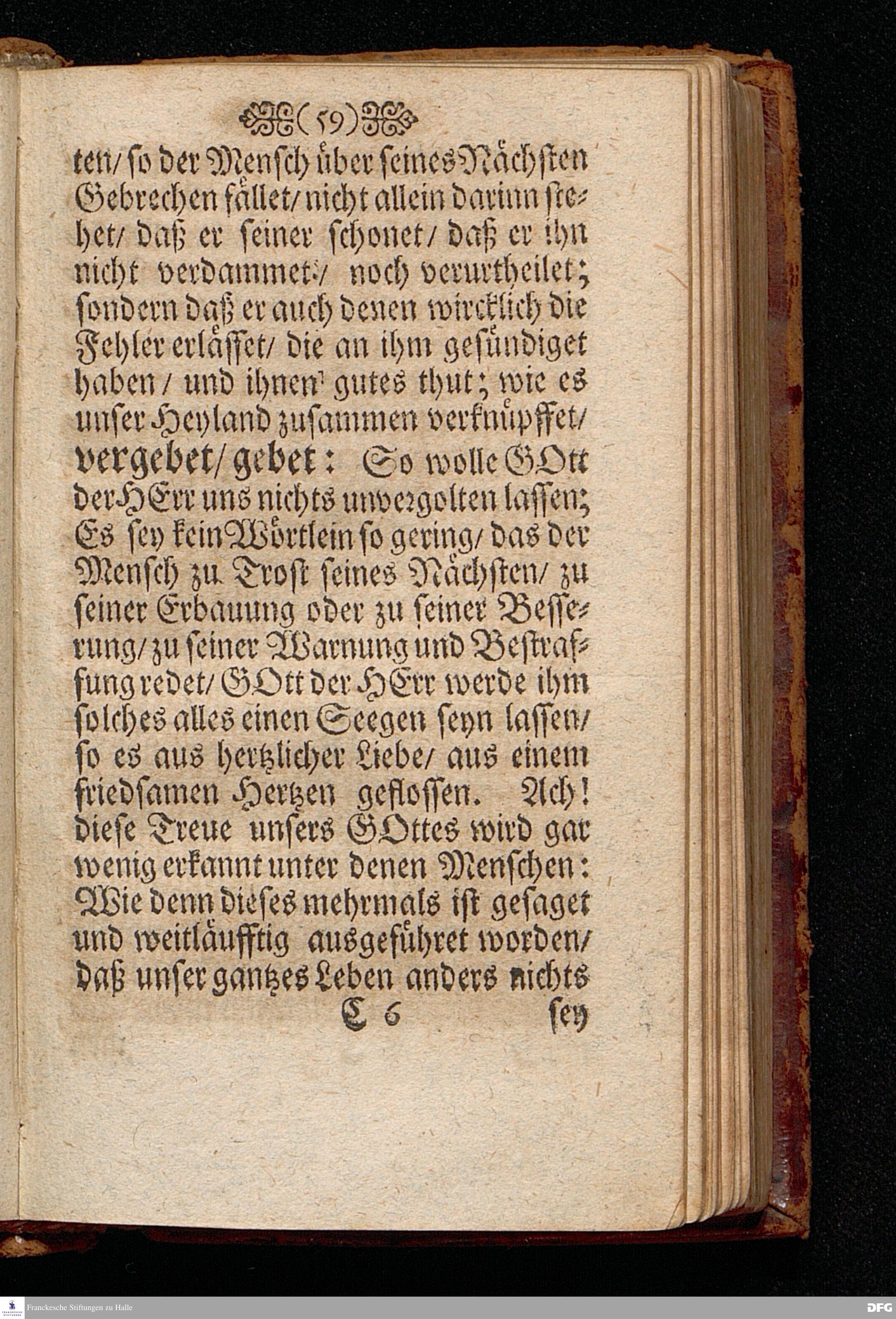 Das Gericht der Liebe über des Nächsten Gebrechen / Am 4.Sonntage nach Trinit. ANNO 1698. In einer Predigt Uber das Evangelium Luc.VI,vers.36==42. In der St.Georgen=Kirche zu Glaucha an Halle vorgestellet von M.August Hermann Francken / SS.Theol.Prof.Ord.& P.Glauch. HALLE / Gedruckt bey Johann Grunerten / Univers.Buchdr. 1701.