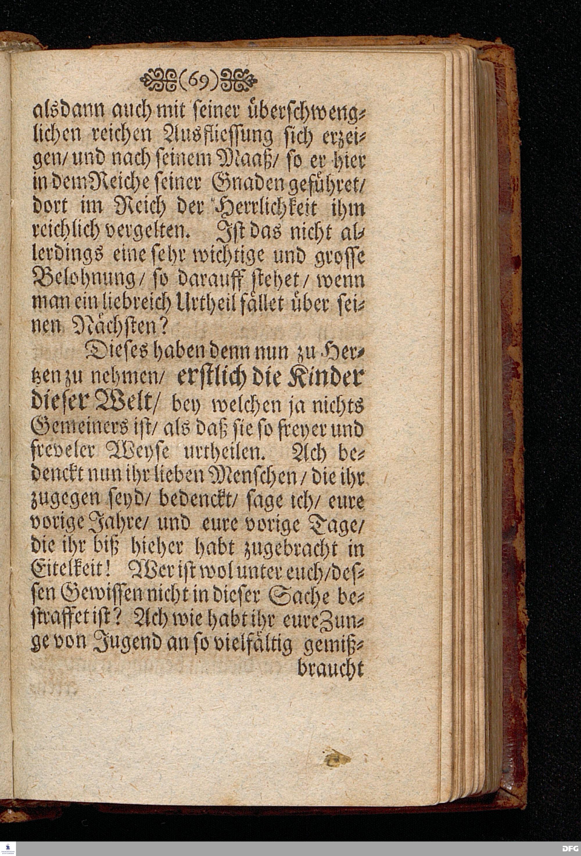 Das Gericht der Liebe über des Nächsten Gebrechen / Am 4.Sonntage nach Trinit. ANNO 1698. In einer Predigt Uber das Evangelium Luc.VI,vers.36==42. In der St.Georgen=Kirche zu Glaucha an Halle vorgestellet von M.August Hermann Francken / SS.Theol.Prof.Ord.& P.Glauch. HALLE / Gedruckt bey Johann Grunerten / Univers.Buchdr. 1701.