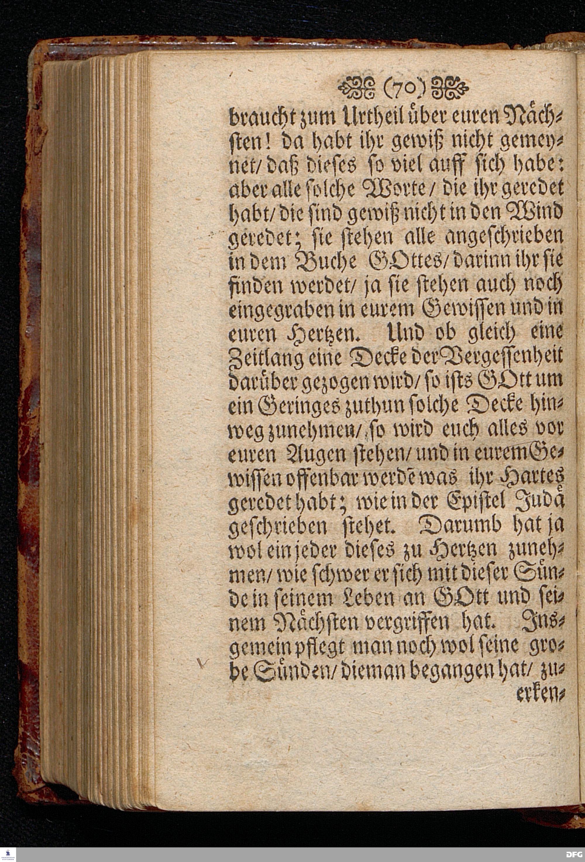 Das Gericht der Liebe über des Nächsten Gebrechen / Am 4.Sonntage nach Trinit. ANNO 1698. In einer Predigt Uber das Evangelium Luc.VI,vers.36==42. In der St.Georgen=Kirche zu Glaucha an Halle vorgestellet von M.August Hermann Francken / SS.Theol.Prof.Ord.& P.Glauch. HALLE / Gedruckt bey Johann Grunerten / Univers.Buchdr. 1701.