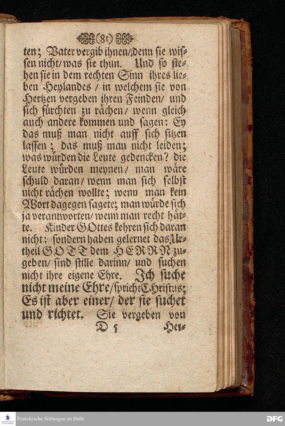 Das Gericht der Liebe über des Nächsten Gebrechen / Am 4.Sonntage nach Trinit. ANNO 1698. In einer Predigt Uber das Evangelium Luc.VI,vers.36==42. In der St.Georgen=Kirche zu Glaucha an Halle vorgestellet von M.August Hermann Francken / SS.Theol.Prof.Ord.& P.Glauch. HALLE / Gedruckt bey Johann Grunerten / Univers.Buchdr. 1701.