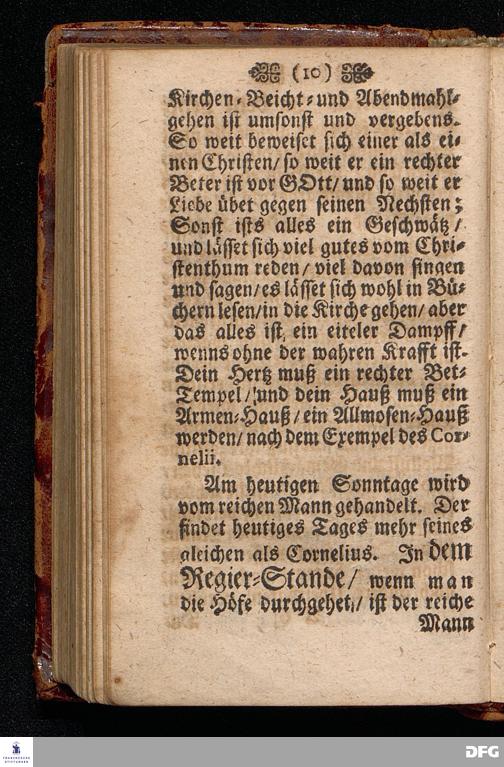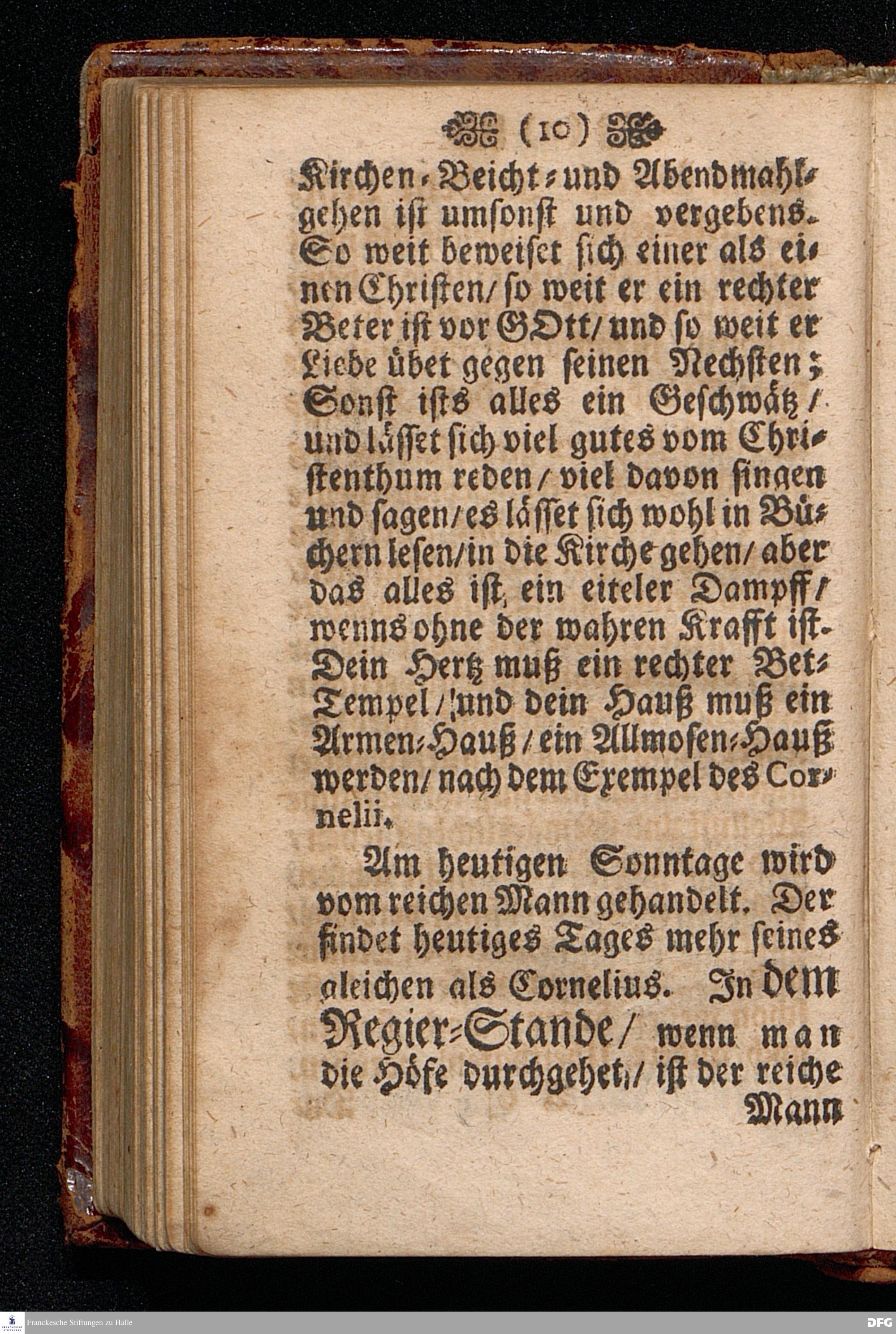 Die Pflicht gegen die Armen / Am I.Sonntage nach Trinit. Anno 1697. In einer Predigt Uber das Evangelium Luc.XVI. v.19--31. In der St.Georgen=Kirche zu Glaucha an Halle vorgestellet Und nunmehro zum dritten mahl herausgegeben von M.August Hermann Francken / S.S.Theol.P.Ord.& Past.Glauch. HALLE / Gedruckt bey Christian Henckeln / 1702.