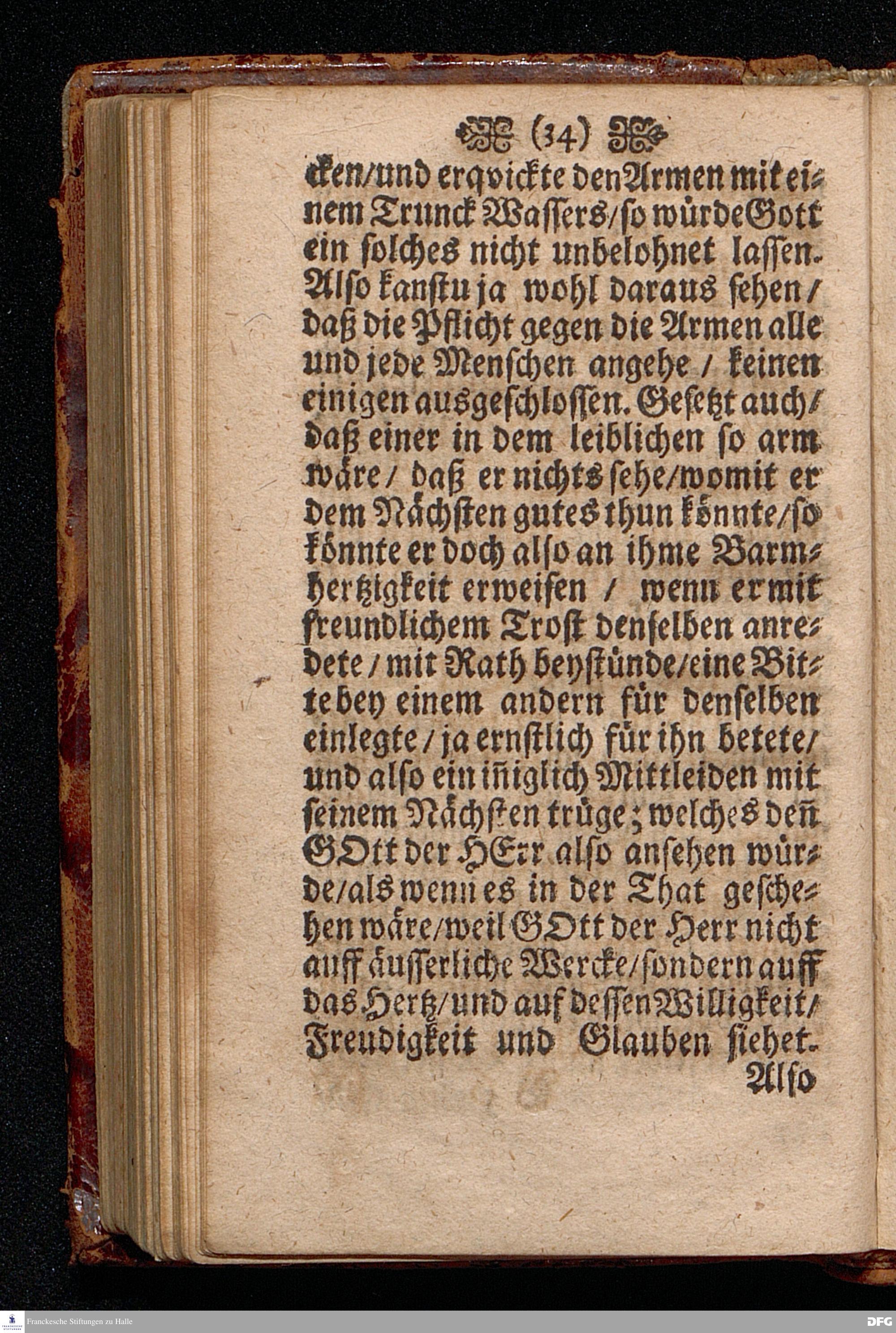 Die Pflicht gegen die Armen / Am I.Sonntage nach Trinit. Anno 1697. In einer Predigt Uber das Evangelium Luc.XVI. v.19--31. In der St.Georgen=Kirche zu Glaucha an Halle vorgestellet Und nunmehro zum dritten mahl herausgegeben von M.August Hermann Francken / S.S.Theol.P.Ord.& Past.Glauch. HALLE / Gedruckt bey Christian Henckeln / 1702.