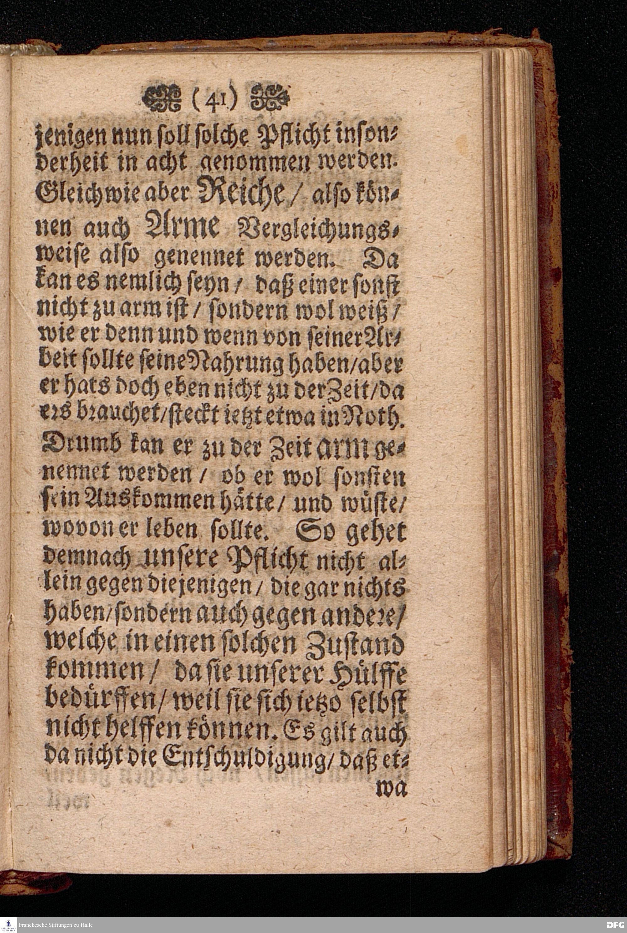Die Pflicht gegen die Armen / Am I.Sonntage nach Trinit. Anno 1697. In einer Predigt Uber das Evangelium Luc.XVI. v.19--31. In der St.Georgen=Kirche zu Glaucha an Halle vorgestellet Und nunmehro zum dritten mahl herausgegeben von M.August Hermann Francken / S.S.Theol.P.Ord.& Past.Glauch. HALLE / Gedruckt bey Christian Henckeln / 1702.