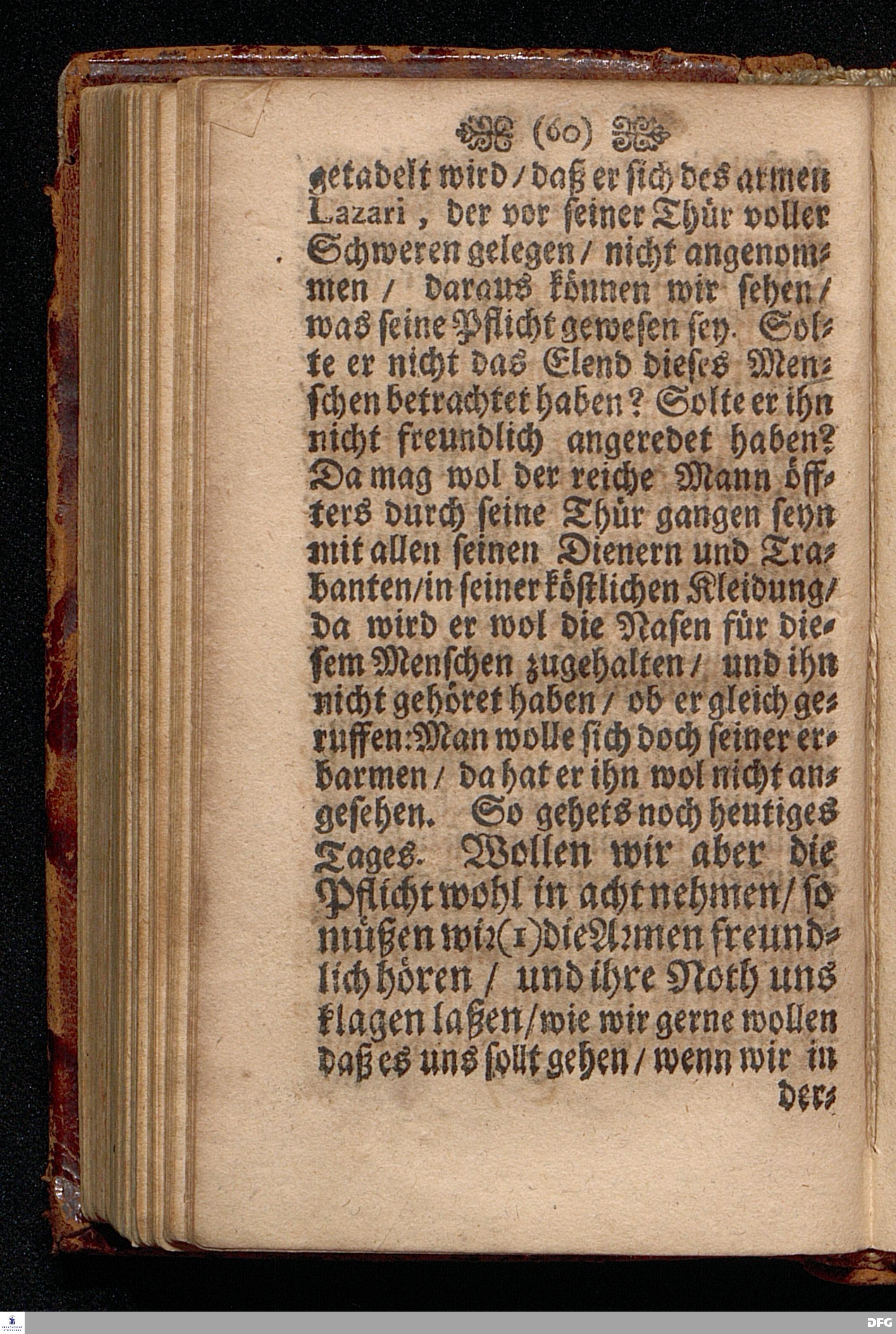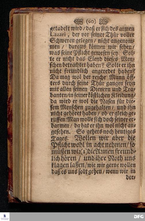 Die Pflicht gegen die Armen / Am I.Sonntage nach Trinit. Anno 1697. In einer Predigt Uber das Evangelium Luc.XVI. v.19--31. In der St.Georgen=Kirche zu Glaucha an Halle vorgestellet Und nunmehro zum dritten mahl herausgegeben von M.August Hermann Francken / S.S.Theol.P.Ord.& Past.Glauch. HALLE / Gedruckt bey Christian Henckeln / 1702.