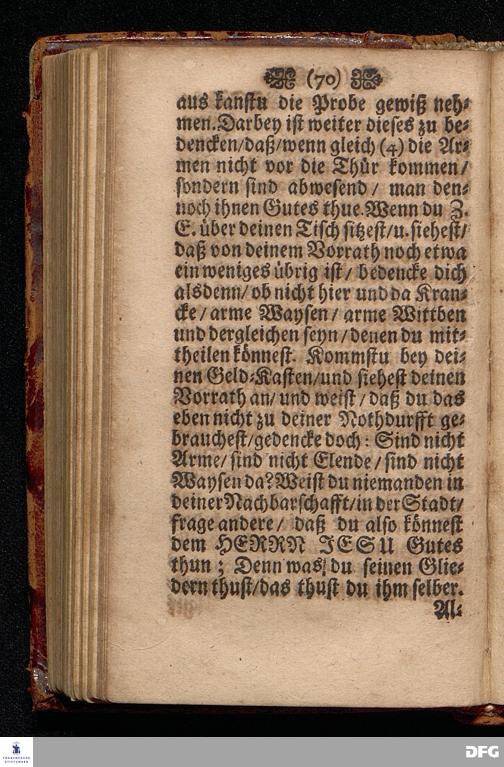 Die Pflicht gegen die Armen / Am I.Sonntage nach Trinit. Anno 1697. In einer Predigt Uber das Evangelium Luc.XVI. v.19--31. In der St.Georgen=Kirche zu Glaucha an Halle vorgestellet Und nunmehro zum dritten mahl herausgegeben von M.August Hermann Francken / S.S.Theol.P.Ord.& Past.Glauch. HALLE / Gedruckt bey Christian Henckeln / 1702.