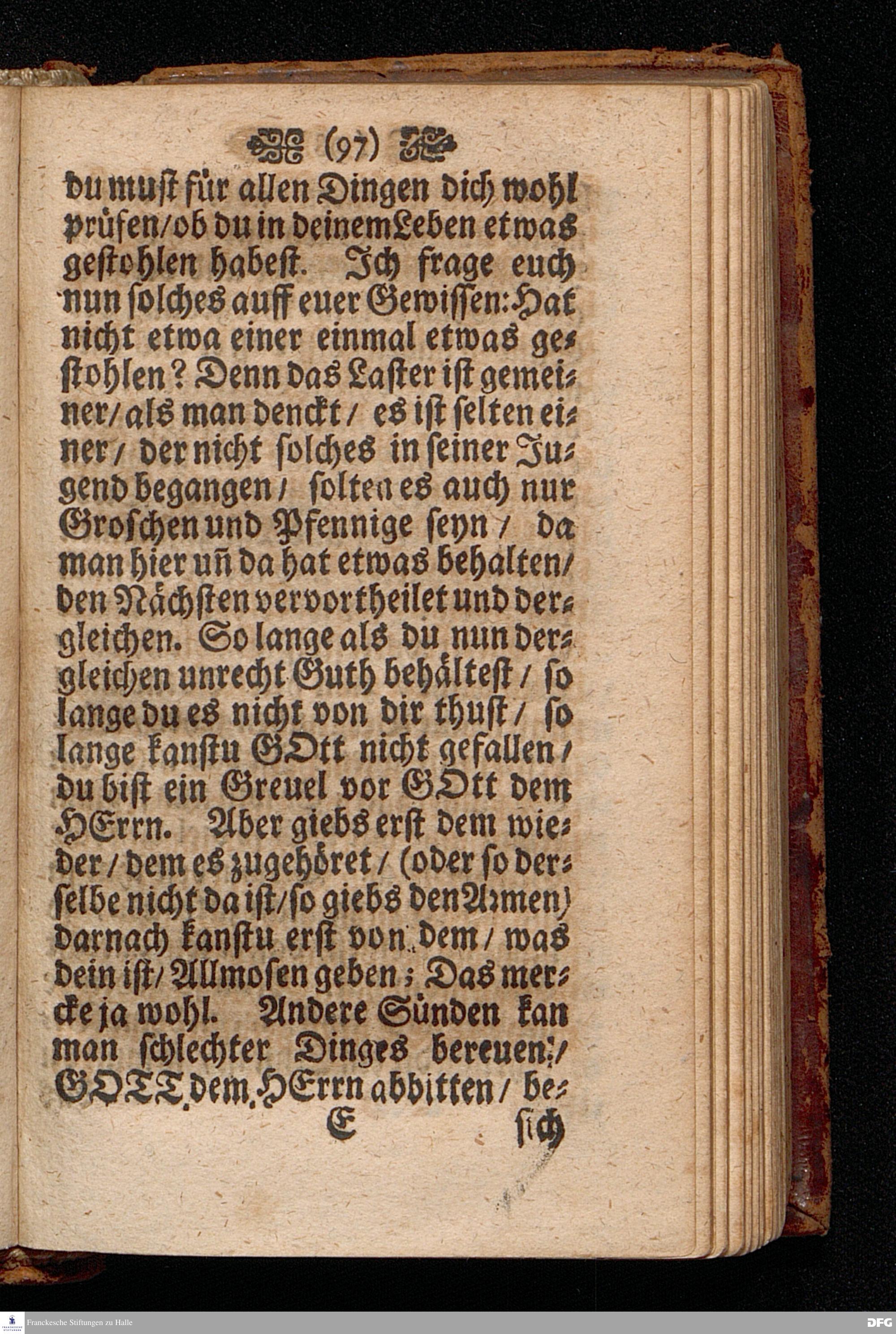 Die Pflicht gegen die Armen / Am I.Sonntage nach Trinit. Anno 1697. In einer Predigt Uber das Evangelium Luc.XVI. v.19--31. In der St.Georgen=Kirche zu Glaucha an Halle vorgestellet Und nunmehro zum dritten mahl herausgegeben von M.August Hermann Francken / S.S.Theol.P.Ord.& Past.Glauch. HALLE / Gedruckt bey Christian Henckeln / 1702.
