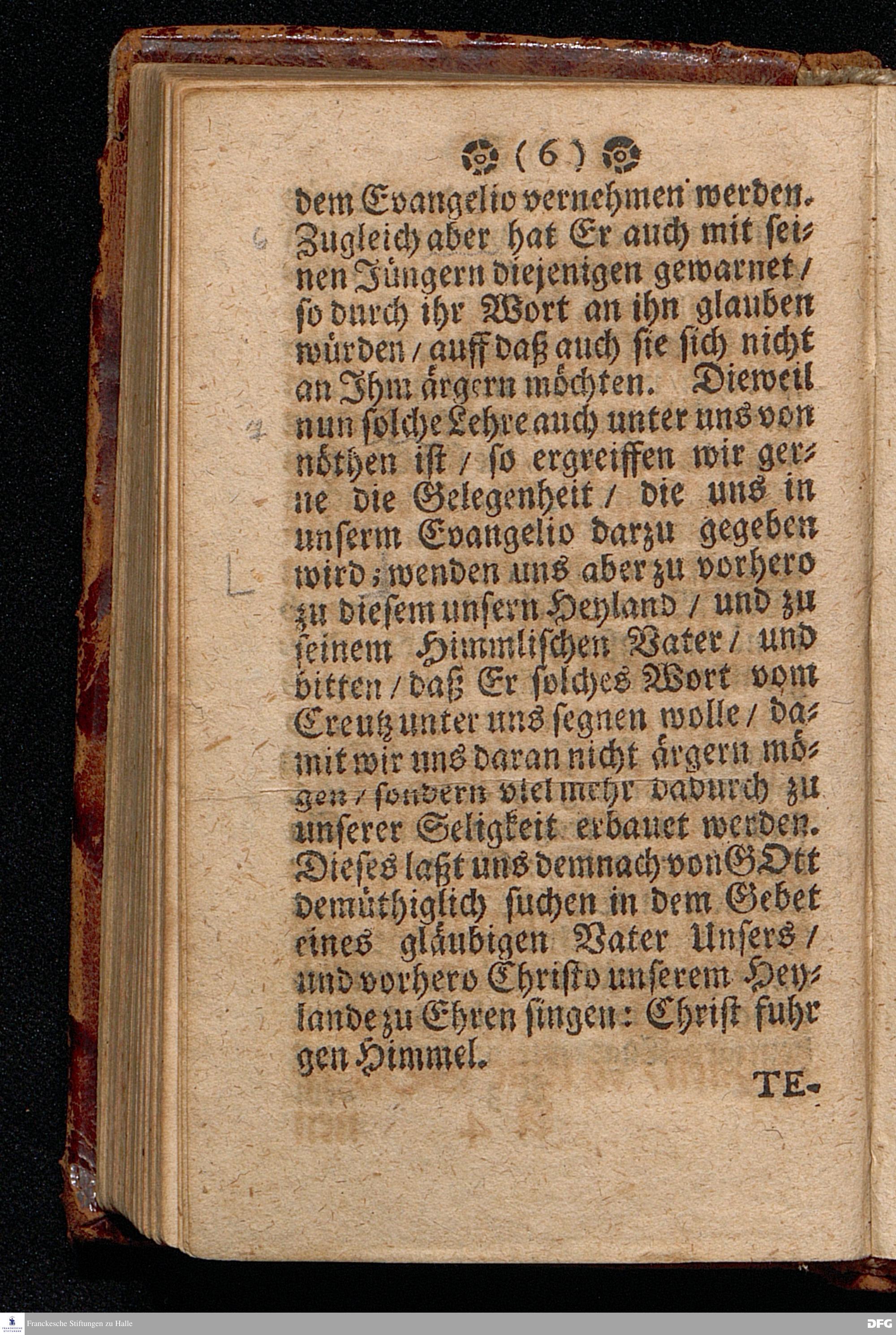Das Aergerniß des Crentzes [!] / Am Sonntage EXAUDI, Anno 1699. In einer Predigt Uber das Evangelium Joh.XV, v.26.27. v. XVI, v.1--4. In der St.Georgen=Kirche zu Glaucha an Halle vorgestellet / von M.August Hermann Francken / SS.Theol.P.Ord.& P.Glauch. HALLE / Druckts Chr.Henckel U.B.1700.