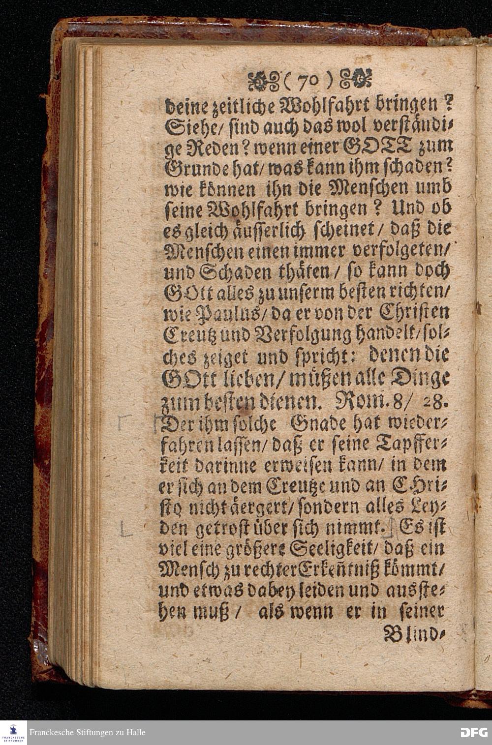 Das Aergerniß des Crentzes [!] / Am Sonntage EXAUDI, Anno 1699. In einer Predigt Uber das Evangelium Joh.XV, v.26.27. v. XVI, v.1--4. In der St.Georgen=Kirche zu Glaucha an Halle vorgestellet / von M.August Hermann Francken / SS.Theol.P.Ord.& P.Glauch. HALLE / Druckts Chr.Henckel U.B.1700.