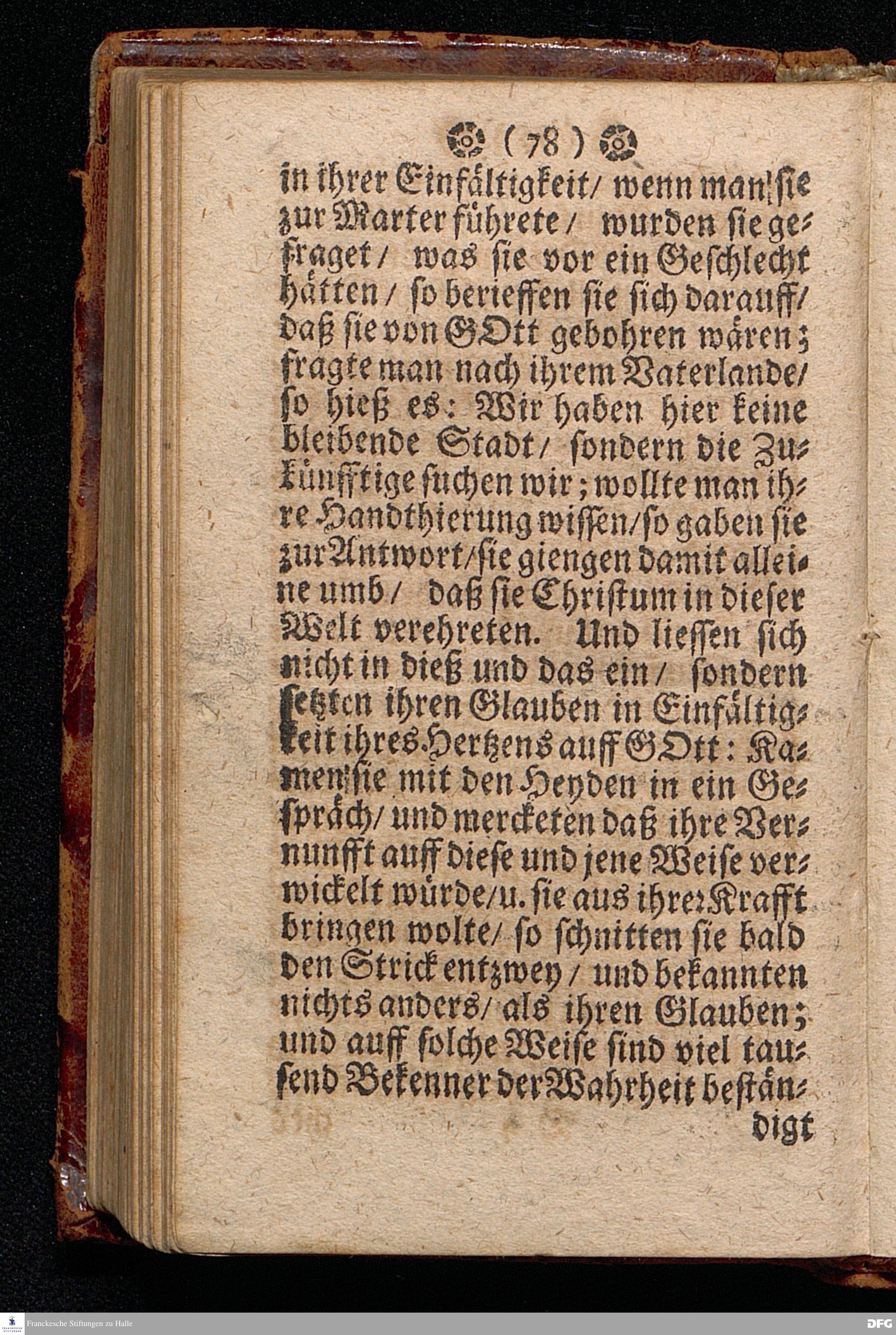 Das Aergerniß des Crentzes [!] / Am Sonntage EXAUDI, Anno 1699. In einer Predigt Uber das Evangelium Joh.XV, v.26.27. v. XVI, v.1--4. In der St.Georgen=Kirche zu Glaucha an Halle vorgestellet / von M.August Hermann Francken / SS.Theol.P.Ord.& P.Glauch. HALLE / Druckts Chr.Henckel U.B.1700.