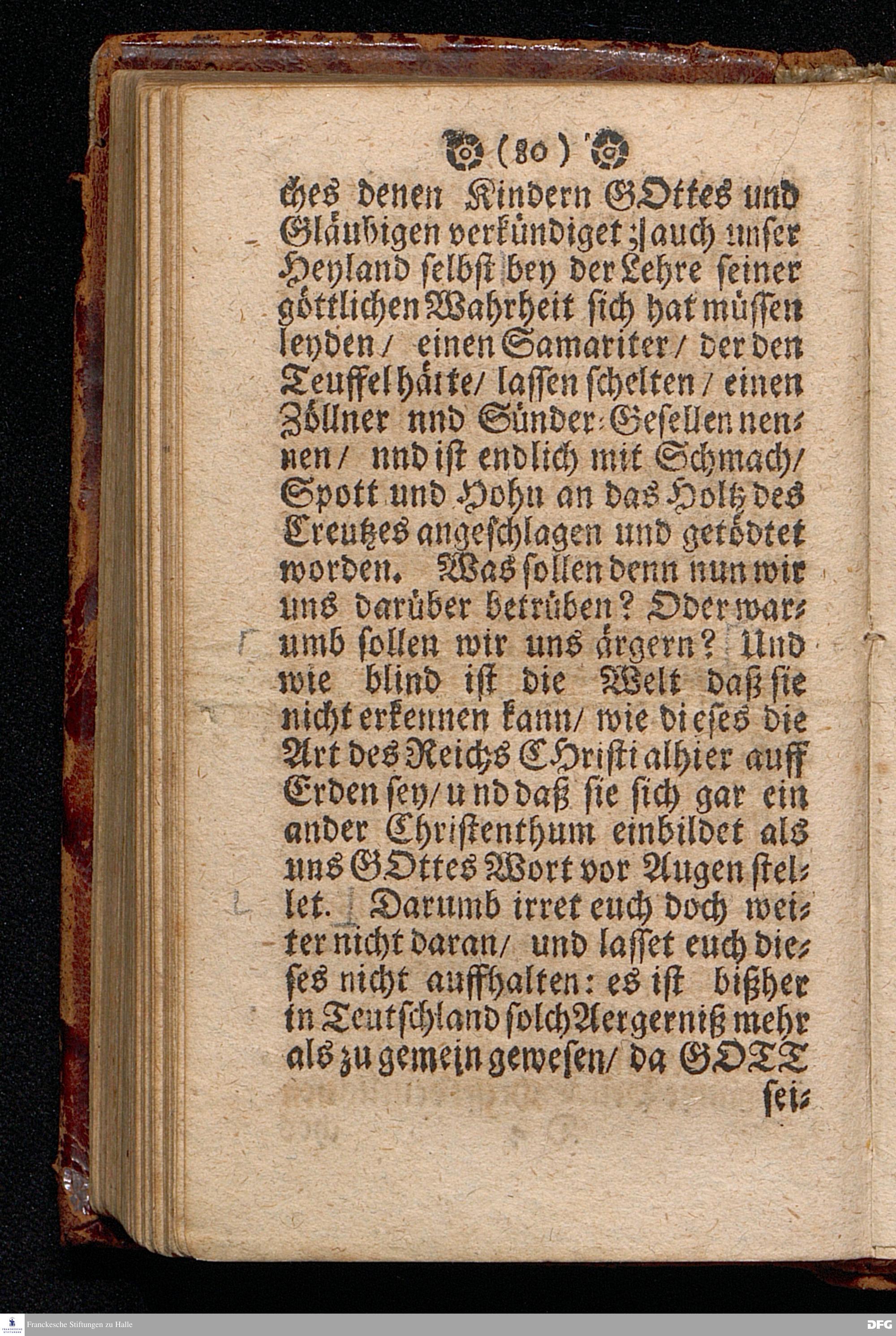 Das Aergerniß des Crentzes [!] / Am Sonntage EXAUDI, Anno 1699. In einer Predigt Uber das Evangelium Joh.XV, v.26.27. v. XVI, v.1--4. In der St.Georgen=Kirche zu Glaucha an Halle vorgestellet / von M.August Hermann Francken / SS.Theol.P.Ord.& P.Glauch. HALLE / Druckts Chr.Henckel U.B.1700.