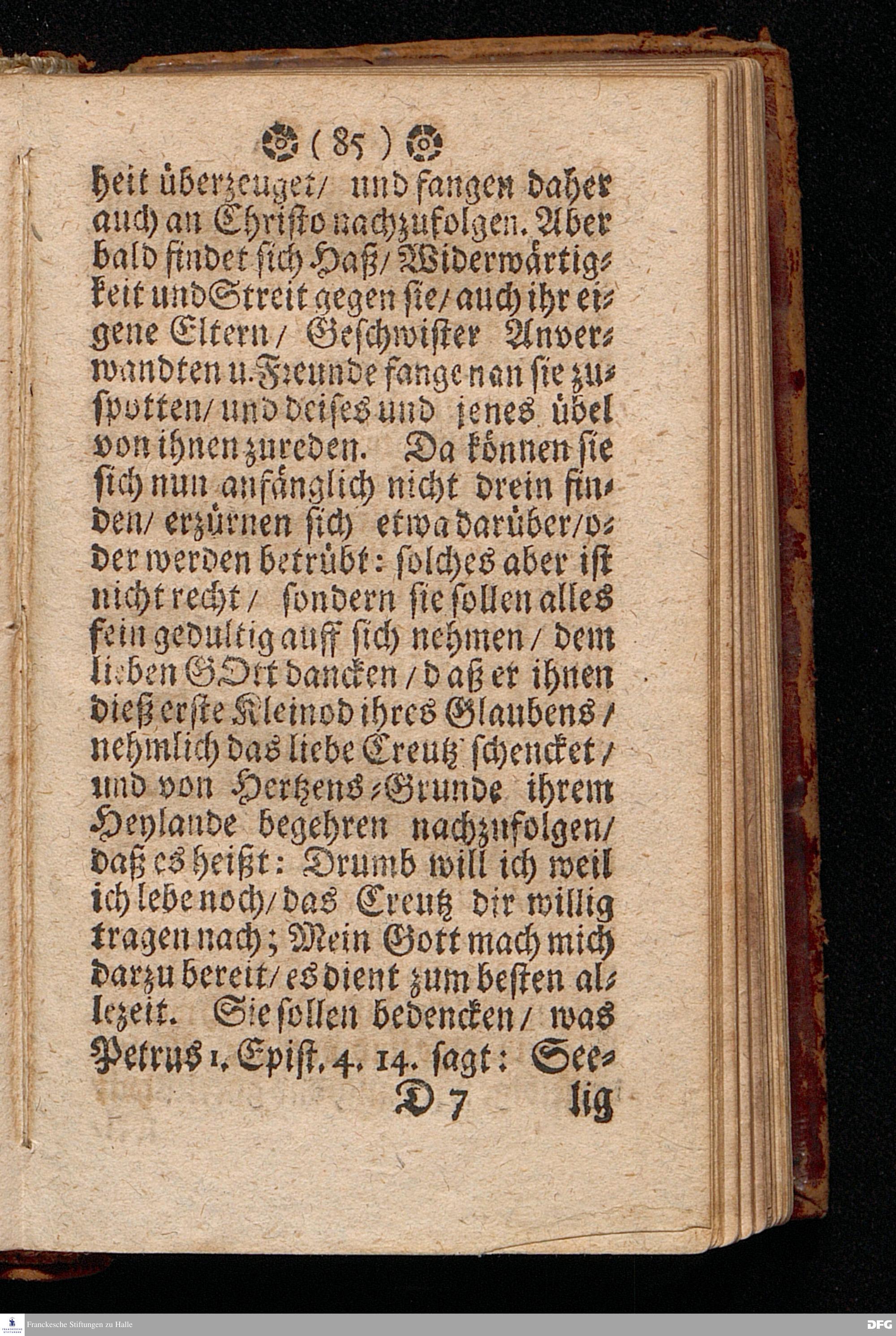 Das Aergerniß des Crentzes [!] / Am Sonntage EXAUDI, Anno 1699. In einer Predigt Uber das Evangelium Joh.XV, v.26.27. v. XVI, v.1--4. In der St.Georgen=Kirche zu Glaucha an Halle vorgestellet / von M.August Hermann Francken / SS.Theol.P.Ord.& P.Glauch. HALLE / Druckts Chr.Henckel U.B.1700.