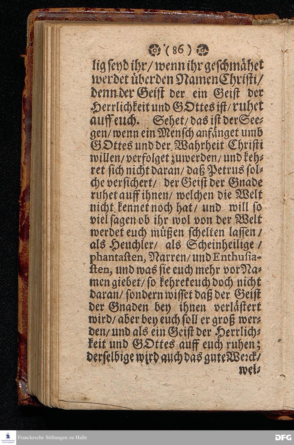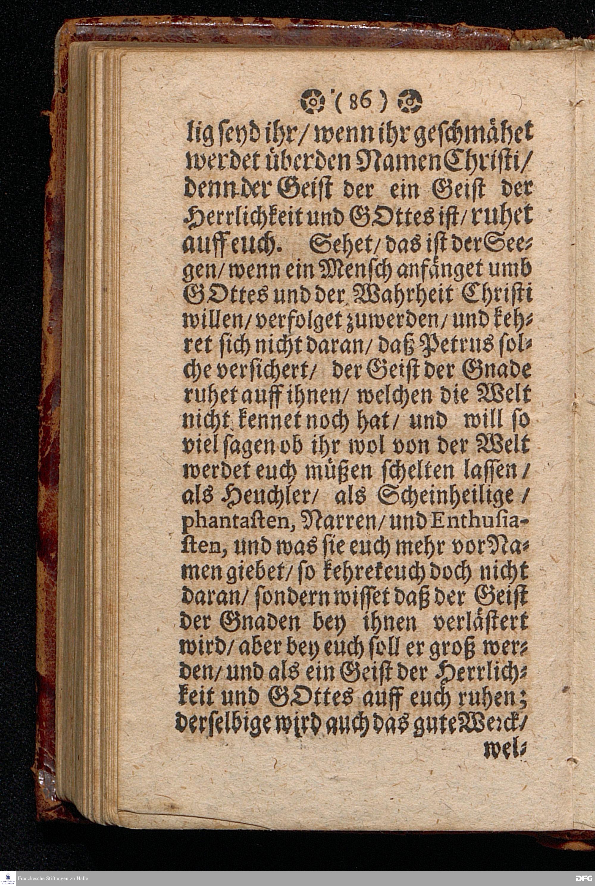 Das Aergerniß des Crentzes [!] / Am Sonntage EXAUDI, Anno 1699. In einer Predigt Uber das Evangelium Joh.XV, v.26.27. v. XVI, v.1--4. In der St.Georgen=Kirche zu Glaucha an Halle vorgestellet / von M.August Hermann Francken / SS.Theol.P.Ord.& P.Glauch. HALLE / Druckts Chr.Henckel U.B.1700.