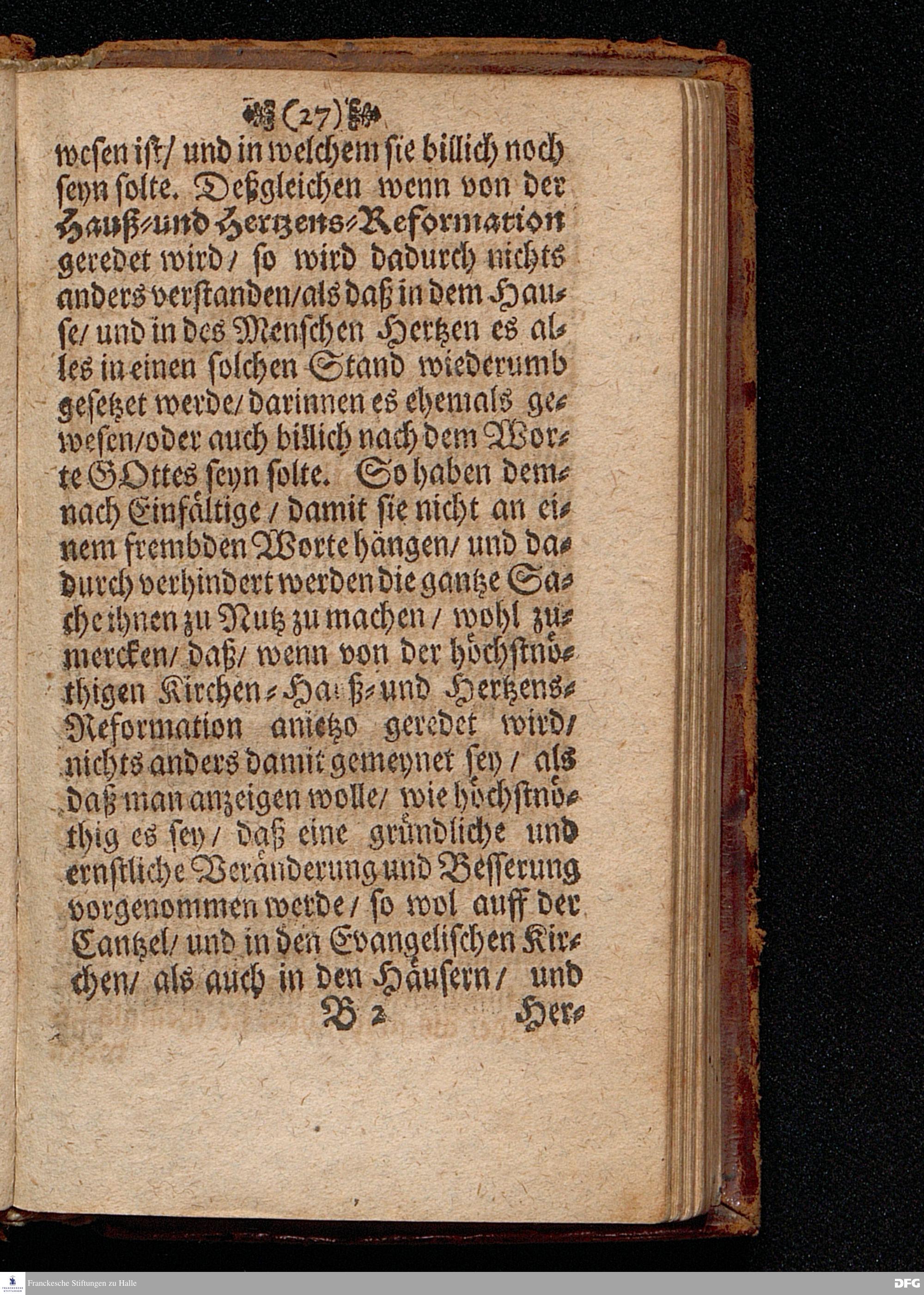 Die Höchstnöthige Kirchen= Hauß= und Hertzens=Reformation Am X.Sonntage nach Trinit. ANNO 1697. In einer Predigt Uber das Evangelium Luc.XIX,vers.41==48.In der St.Georgen=Kirche zu Glaucha an Halle vorgestellet von M.August Hermann Francken / SS.Theol.P.P.Ord.& P.Glauch. HALLE / In Verlegung des Wäysen=Hauses / 1702.