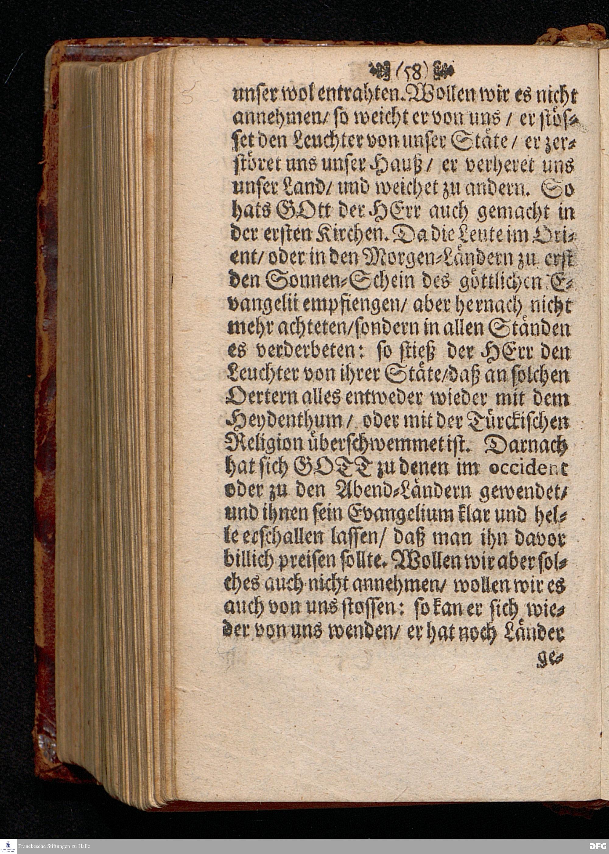Die Höchstnöthige Kirchen= Hauß= und Hertzens=Reformation Am X.Sonntage nach Trinit. ANNO 1697. In einer Predigt Uber das Evangelium Luc.XIX,vers.41==48.In der St.Georgen=Kirche zu Glaucha an Halle vorgestellet von M.August Hermann Francken / SS.Theol.P.P.Ord.& P.Glauch. HALLE / In Verlegung des Wäysen=Hauses / 1702.
