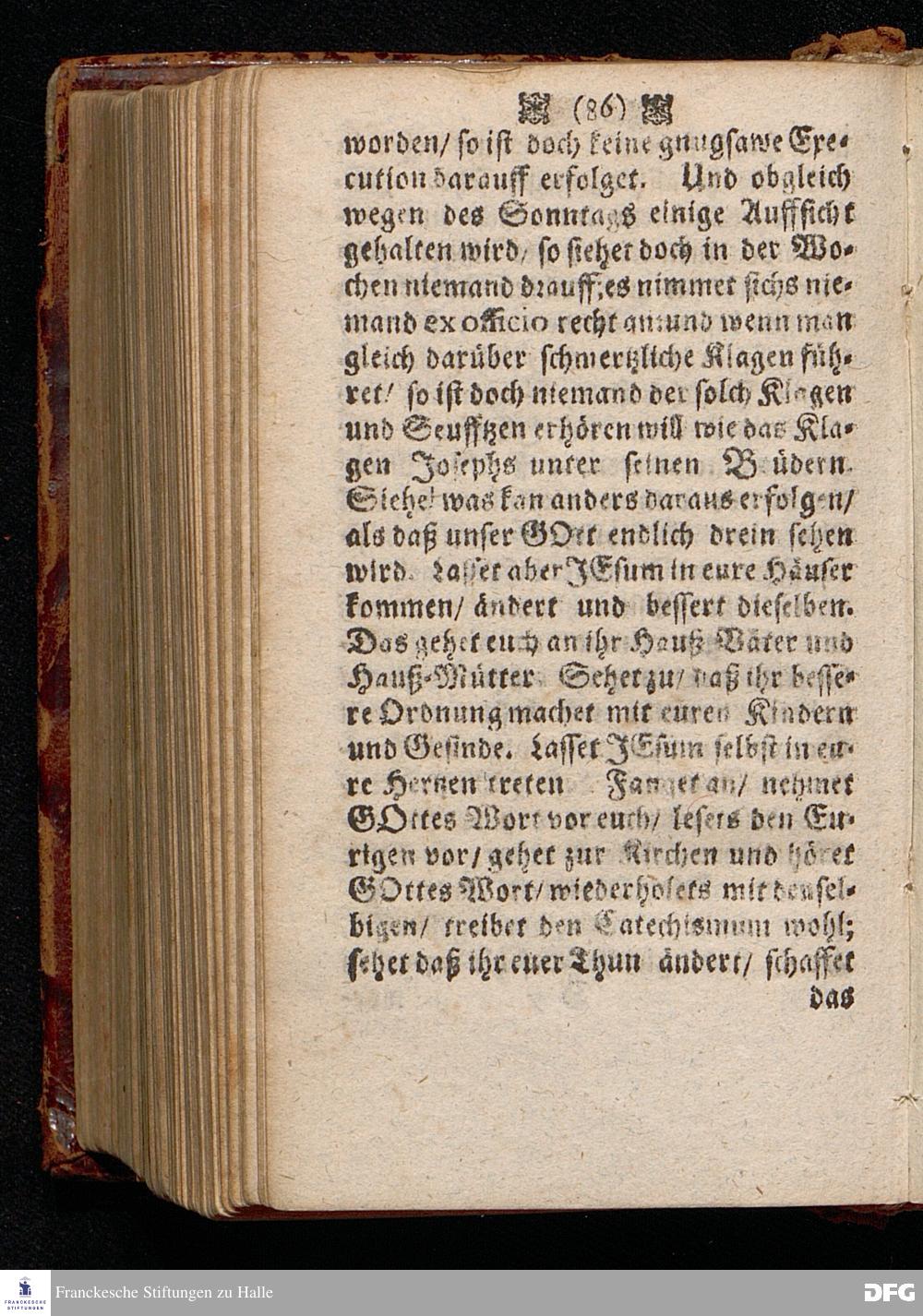 Die Höchstnöthige Kirchen= Hauß= und Hertzens=Reformation Am X.Sonntage nach Trinit. ANNO 1697. In einer Predigt Uber das Evangelium Luc.XIX,vers.41==48.In der St.Georgen=Kirche zu Glaucha an Halle vorgestellet von M.August Hermann Francken / SS.Theol.P.P.Ord.& P.Glauch. HALLE / In Verlegung des Wäysen=Hauses / 1702.