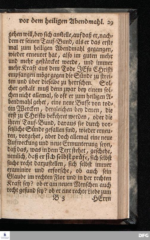 Die nöthige Prüfung sein selbst vor dem Gebrauch des Heiligen Abendmahls / Nach Anleitung der Epistol.Lection 1.Cor.IX [vielm.XI !], v.23 u.s.f. An dem so genannten Grünen Donnerstage Anno 1712. In der St.Georgen Kirche zu Glaucha an Halle vorgestellet, Und insonderheit mit zu einem Unterricht für diejenige, so sich aus mancherley Ursachen vom H.Abendmahl enthalten, gerichtet von August Hermann Francken / S.Th.P.O. & Past.zu St.Ulrich, u. des Gymn.Schol. Die fünfte Edition. Dabey ein Anhang von der unterschiedenen Beschaffenheit der würdigen Communicanten vom Autore zu Nürnberg vorgestellet den 6ten Mart. anno 1718. Der Jugend in den Schulen des Wäysen=Hauses nach gehaltenem Herbst=Examine ausgetheilet. HALLE, in Verlegung des Wäysenhauses, 1728.