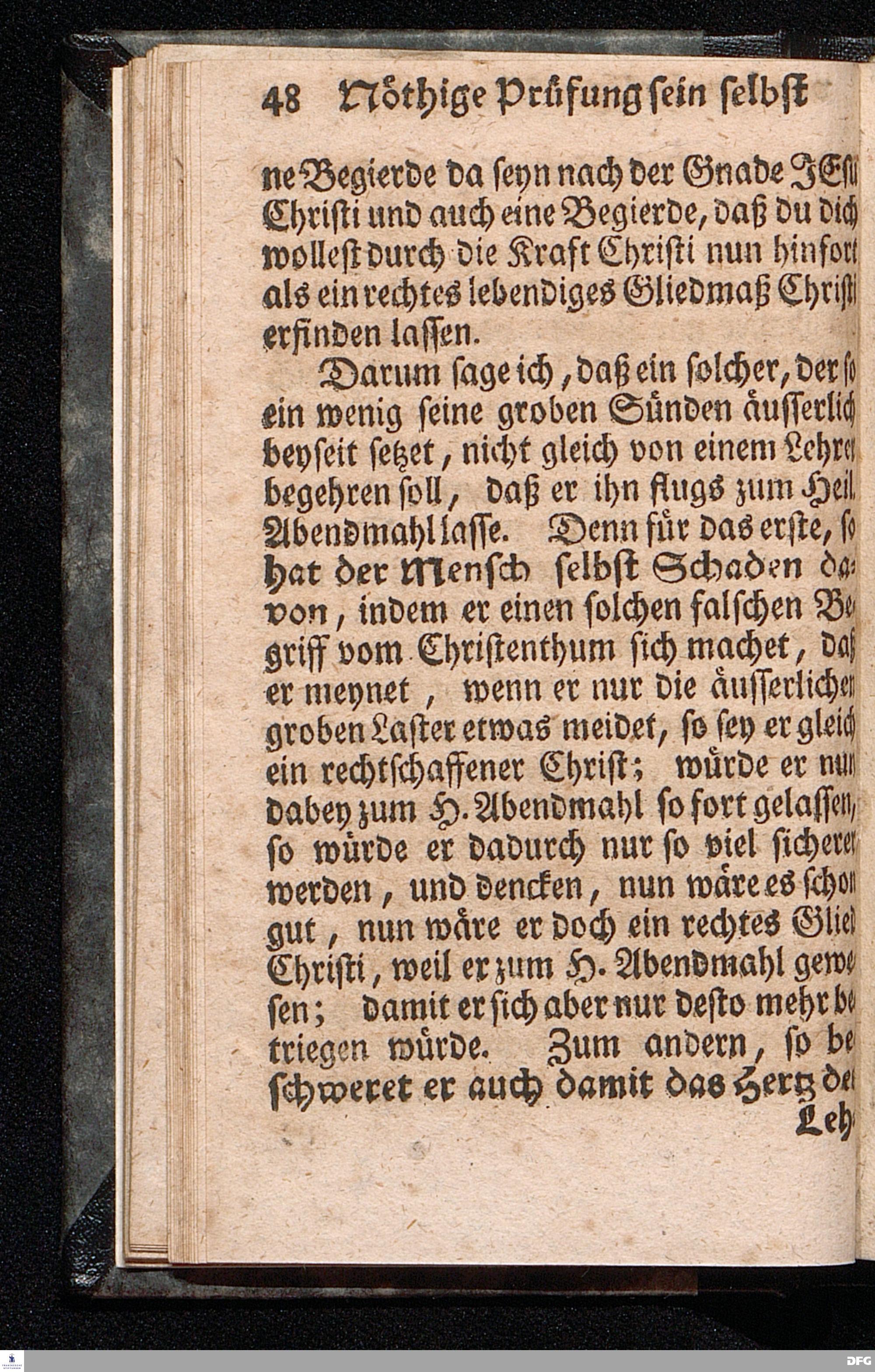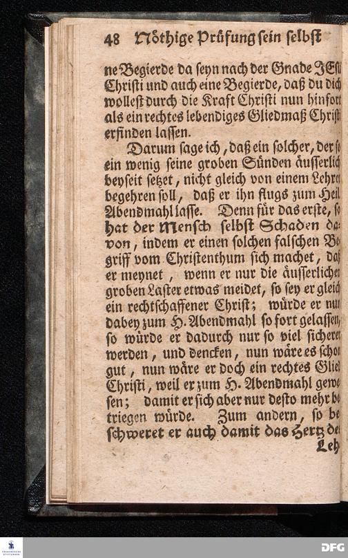Die nöthige Prüfung sein selbst vor dem Gebrauch des Heiligen Abendmahls / Nach Anleitung der Epistol.Lection 1.Cor.IX [vielm.XI !], v.23 u.s.f. An dem so genannten Grünen Donnerstage Anno 1712. In der St.Georgen Kirche zu Glaucha an Halle vorgestellet, Und insonderheit mit zu einem Unterricht für diejenige, so sich aus mancherley Ursachen vom H.Abendmahl enthalten, gerichtet von August Hermann Francken / S.Th.P.O. & Past.zu St.Ulrich, u. des Gymn.Schol. Die fünfte Edition. Dabey ein Anhang von der unterschiedenen Beschaffenheit der würdigen Communicanten vom Autore zu Nürnberg vorgestellet den 6ten Mart. anno 1718. Der Jugend in den Schulen des Wäysen=Hauses nach gehaltenem Herbst=Examine ausgetheilet. HALLE, in Verlegung des Wäysenhauses, 1728.