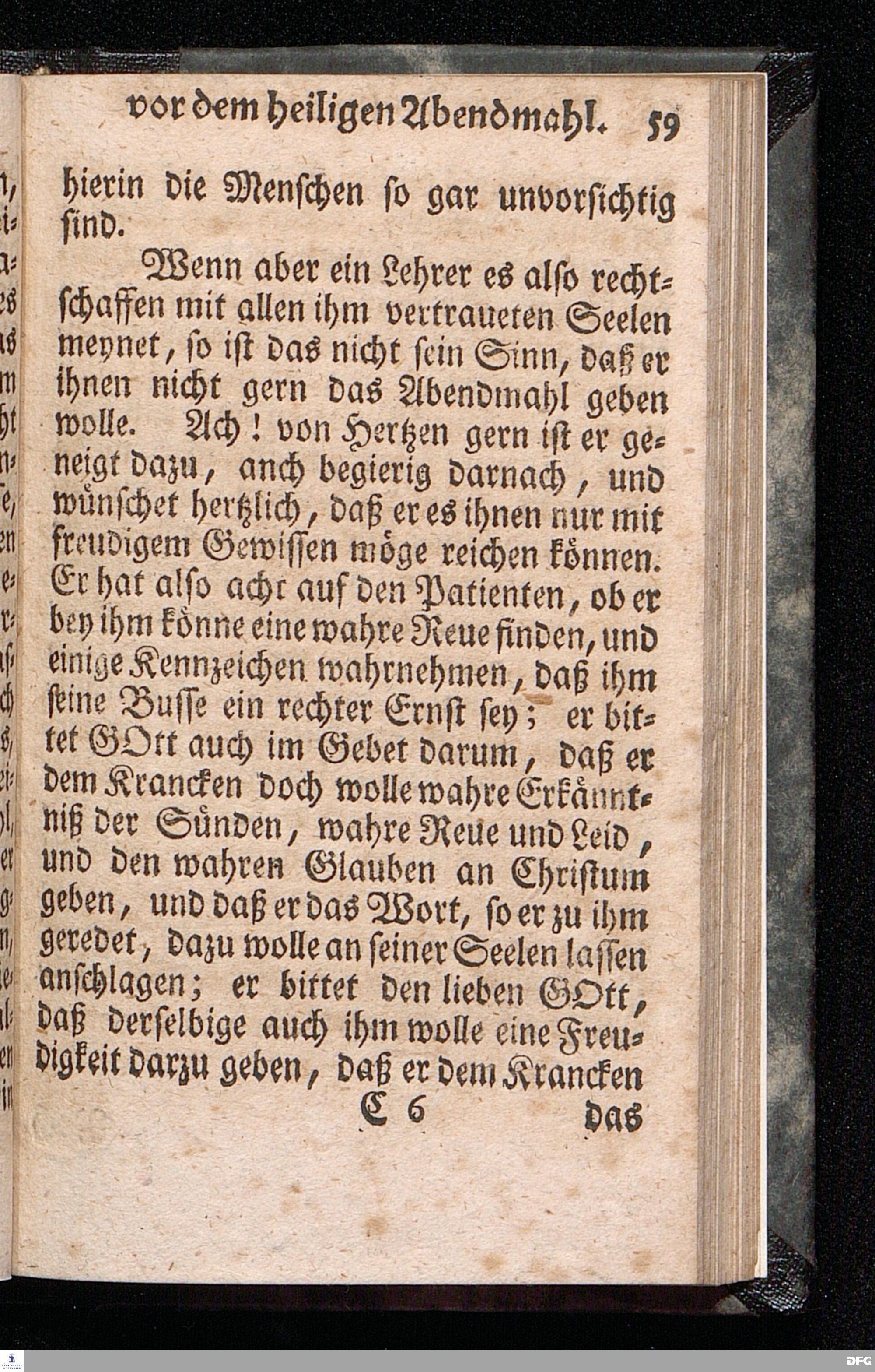 Die nöthige Prüfung sein selbst vor dem Gebrauch des Heiligen Abendmahls / Nach Anleitung der Epistol.Lection 1.Cor.IX [vielm.XI !], v.23 u.s.f. An dem so genannten Grünen Donnerstage Anno 1712. In der St.Georgen Kirche zu Glaucha an Halle vorgestellet, Und insonderheit mit zu einem Unterricht für diejenige, so sich aus mancherley Ursachen vom H.Abendmahl enthalten, gerichtet von August Hermann Francken / S.Th.P.O. & Past.zu St.Ulrich, u. des Gymn.Schol. Die fünfte Edition. Dabey ein Anhang von der unterschiedenen Beschaffenheit der würdigen Communicanten vom Autore zu Nürnberg vorgestellet den 6ten Mart. anno 1718. Der Jugend in den Schulen des Wäysen=Hauses nach gehaltenem Herbst=Examine ausgetheilet. HALLE, in Verlegung des Wäysenhauses, 1728.