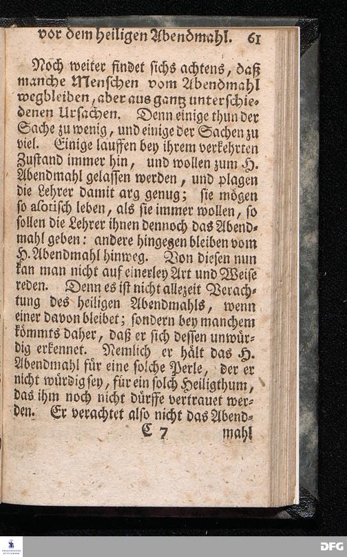 Die nöthige Prüfung sein selbst vor dem Gebrauch des Heiligen Abendmahls / Nach Anleitung der Epistol.Lection 1.Cor.IX [vielm.XI !], v.23 u.s.f. An dem so genannten Grünen Donnerstage Anno 1712. In der St.Georgen Kirche zu Glaucha an Halle vorgestellet, Und insonderheit mit zu einem Unterricht für diejenige, so sich aus mancherley Ursachen vom H.Abendmahl enthalten, gerichtet von August Hermann Francken / S.Th.P.O. & Past.zu St.Ulrich, u. des Gymn.Schol. Die fünfte Edition. Dabey ein Anhang von der unterschiedenen Beschaffenheit der würdigen Communicanten vom Autore zu Nürnberg vorgestellet den 6ten Mart. anno 1718. Der Jugend in den Schulen des Wäysen=Hauses nach gehaltenem Herbst=Examine ausgetheilet. HALLE, in Verlegung des Wäysenhauses, 1728.