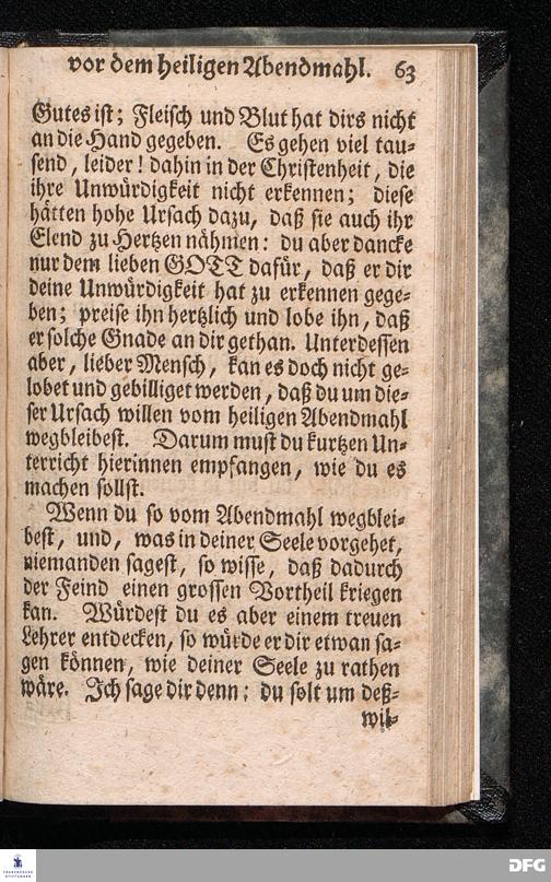 Die nöthige Prüfung sein selbst vor dem Gebrauch des Heiligen Abendmahls / Nach Anleitung der Epistol.Lection 1.Cor.IX [vielm.XI !], v.23 u.s.f. An dem so genannten Grünen Donnerstage Anno 1712. In der St.Georgen Kirche zu Glaucha an Halle vorgestellet, Und insonderheit mit zu einem Unterricht für diejenige, so sich aus mancherley Ursachen vom H.Abendmahl enthalten, gerichtet von August Hermann Francken / S.Th.P.O. & Past.zu St.Ulrich, u. des Gymn.Schol. Die fünfte Edition. Dabey ein Anhang von der unterschiedenen Beschaffenheit der würdigen Communicanten vom Autore zu Nürnberg vorgestellet den 6ten Mart. anno 1718. Der Jugend in den Schulen des Wäysen=Hauses nach gehaltenem Herbst=Examine ausgetheilet. HALLE, in Verlegung des Wäysenhauses, 1728.