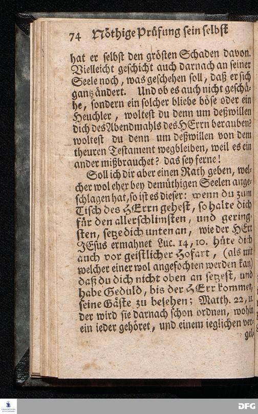 Die nöthige Prüfung sein selbst vor dem Gebrauch des Heiligen Abendmahls / Nach Anleitung der Epistol.Lection 1.Cor.IX [vielm.XI !], v.23 u.s.f. An dem so genannten Grünen Donnerstage Anno 1712. In der St.Georgen Kirche zu Glaucha an Halle vorgestellet, Und insonderheit mit zu einem Unterricht für diejenige, so sich aus mancherley Ursachen vom H.Abendmahl enthalten, gerichtet von August Hermann Francken / S.Th.P.O. & Past.zu St.Ulrich, u. des Gymn.Schol. Die fünfte Edition. Dabey ein Anhang von der unterschiedenen Beschaffenheit der würdigen Communicanten vom Autore zu Nürnberg vorgestellet den 6ten Mart. anno 1718. Der Jugend in den Schulen des Wäysen=Hauses nach gehaltenem Herbst=Examine ausgetheilet. HALLE, in Verlegung des Wäysenhauses, 1728.