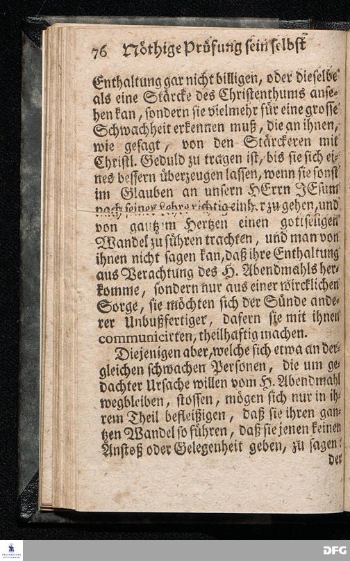 Die nöthige Prüfung sein selbst vor dem Gebrauch des Heiligen Abendmahls / Nach Anleitung der Epistol.Lection 1.Cor.IX [vielm.XI !], v.23 u.s.f. An dem so genannten Grünen Donnerstage Anno 1712. In der St.Georgen Kirche zu Glaucha an Halle vorgestellet, Und insonderheit mit zu einem Unterricht für diejenige, so sich aus mancherley Ursachen vom H.Abendmahl enthalten, gerichtet von August Hermann Francken / S.Th.P.O. & Past.zu St.Ulrich, u. des Gymn.Schol. Die fünfte Edition. Dabey ein Anhang von der unterschiedenen Beschaffenheit der würdigen Communicanten vom Autore zu Nürnberg vorgestellet den 6ten Mart. anno 1718. Der Jugend in den Schulen des Wäysen=Hauses nach gehaltenem Herbst=Examine ausgetheilet. HALLE, in Verlegung des Wäysenhauses, 1728.