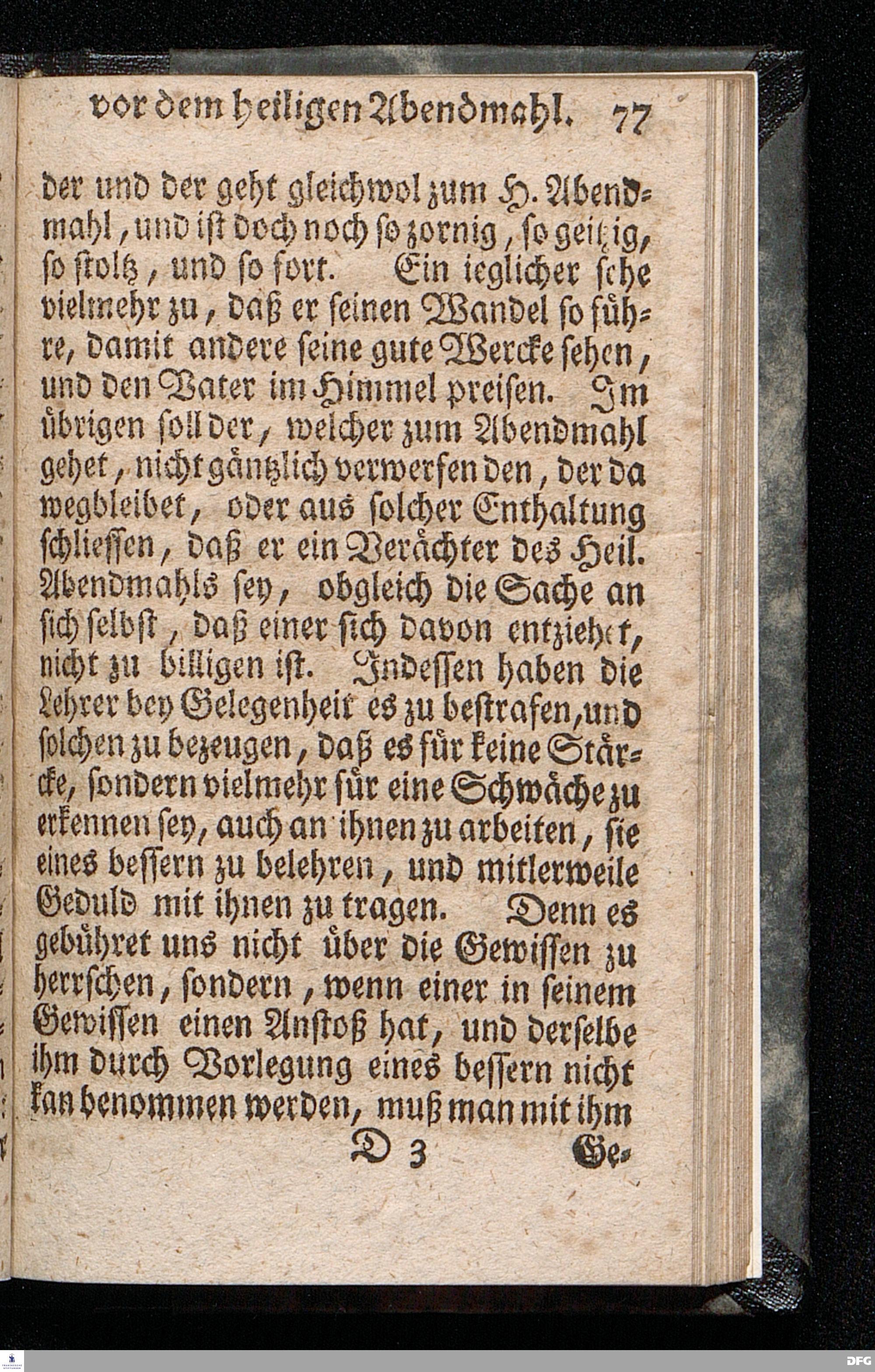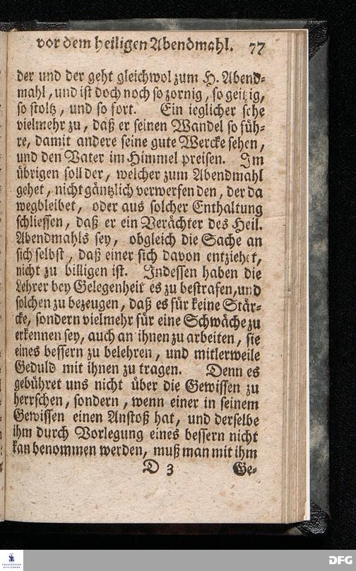 Die nöthige Prüfung sein selbst vor dem Gebrauch des Heiligen Abendmahls / Nach Anleitung der Epistol.Lection 1.Cor.IX [vielm.XI !], v.23 u.s.f. An dem so genannten Grünen Donnerstage Anno 1712. In der St.Georgen Kirche zu Glaucha an Halle vorgestellet, Und insonderheit mit zu einem Unterricht für diejenige, so sich aus mancherley Ursachen vom H.Abendmahl enthalten, gerichtet von August Hermann Francken / S.Th.P.O. & Past.zu St.Ulrich, u. des Gymn.Schol. Die fünfte Edition. Dabey ein Anhang von der unterschiedenen Beschaffenheit der würdigen Communicanten vom Autore zu Nürnberg vorgestellet den 6ten Mart. anno 1718. Der Jugend in den Schulen des Wäysen=Hauses nach gehaltenem Herbst=Examine ausgetheilet. HALLE, in Verlegung des Wäysenhauses, 1728.
