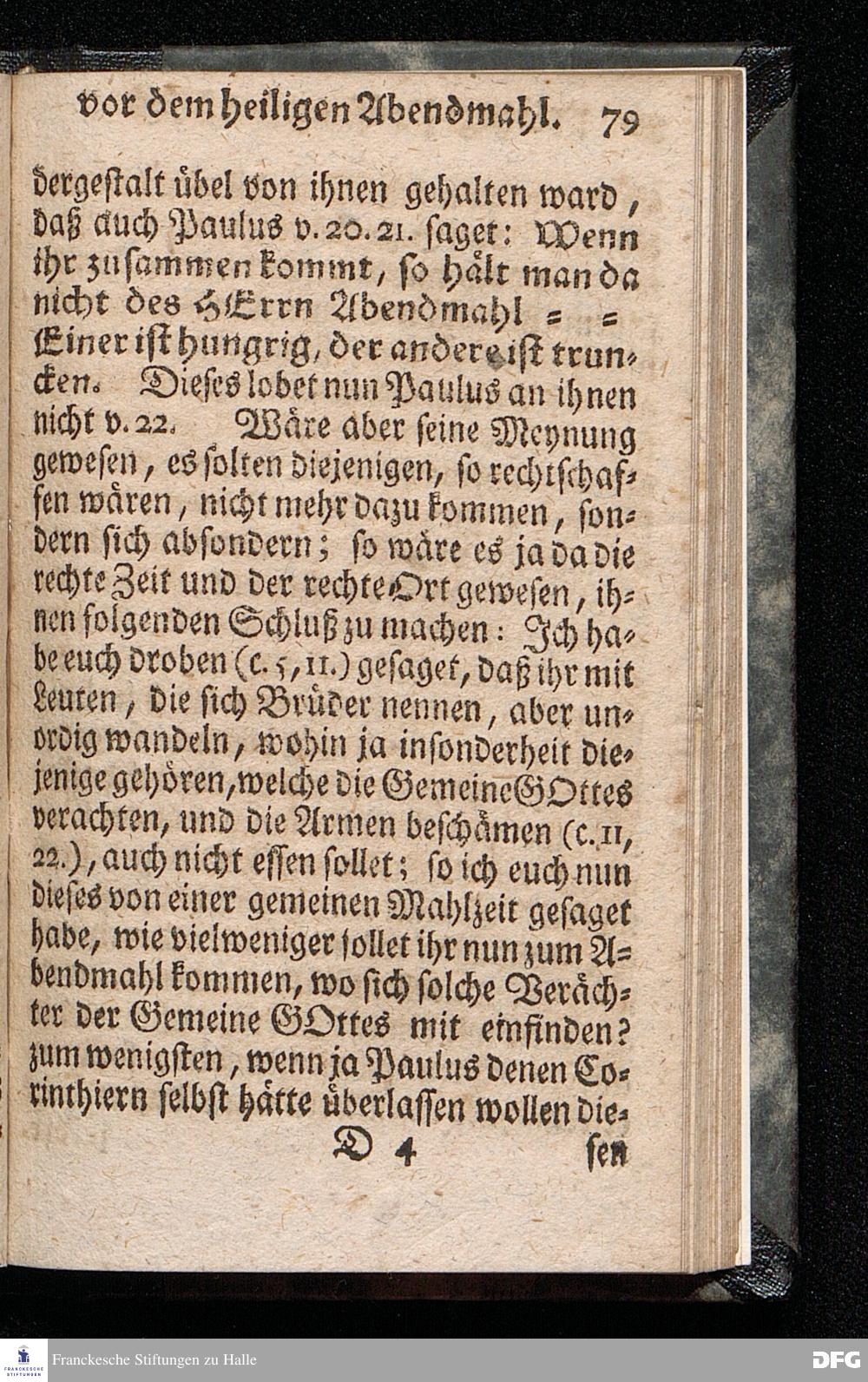 Die nöthige Prüfung sein selbst vor dem Gebrauch des Heiligen Abendmahls / Nach Anleitung der Epistol.Lection 1.Cor.IX [vielm.XI !], v.23 u.s.f. An dem so genannten Grünen Donnerstage Anno 1712. In der St.Georgen Kirche zu Glaucha an Halle vorgestellet, Und insonderheit mit zu einem Unterricht für diejenige, so sich aus mancherley Ursachen vom H.Abendmahl enthalten, gerichtet von August Hermann Francken / S.Th.P.O. & Past.zu St.Ulrich, u. des Gymn.Schol. Die fünfte Edition. Dabey ein Anhang von der unterschiedenen Beschaffenheit der würdigen Communicanten vom Autore zu Nürnberg vorgestellet den 6ten Mart. anno 1718. Der Jugend in den Schulen des Wäysen=Hauses nach gehaltenem Herbst=Examine ausgetheilet. HALLE, in Verlegung des Wäysenhauses, 1728.