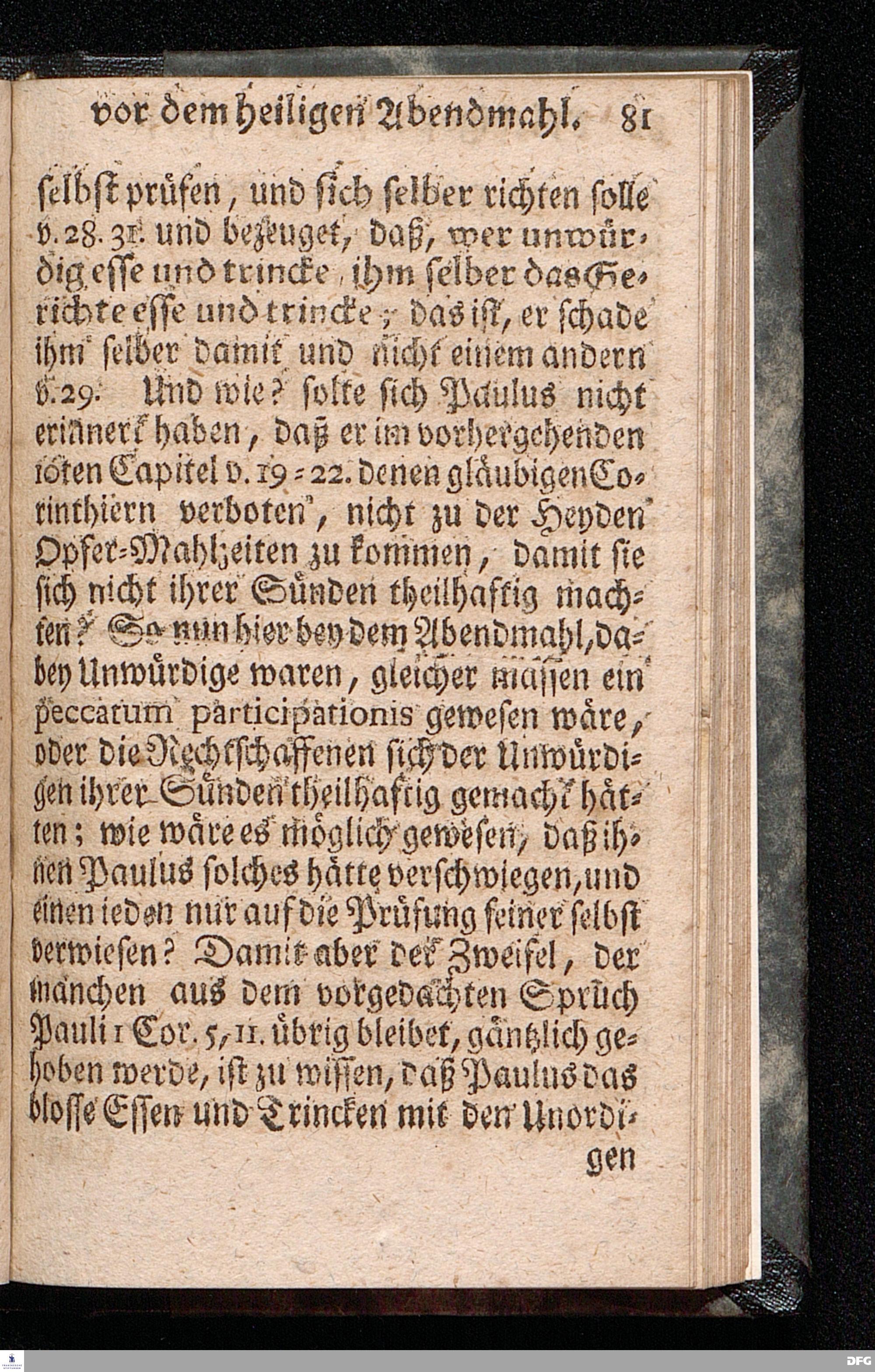 Die nöthige Prüfung sein selbst vor dem Gebrauch des Heiligen Abendmahls / Nach Anleitung der Epistol.Lection 1.Cor.IX [vielm.XI !], v.23 u.s.f. An dem so genannten Grünen Donnerstage Anno 1712. In der St.Georgen Kirche zu Glaucha an Halle vorgestellet, Und insonderheit mit zu einem Unterricht für diejenige, so sich aus mancherley Ursachen vom H.Abendmahl enthalten, gerichtet von August Hermann Francken / S.Th.P.O. & Past.zu St.Ulrich, u. des Gymn.Schol. Die fünfte Edition. Dabey ein Anhang von der unterschiedenen Beschaffenheit der würdigen Communicanten vom Autore zu Nürnberg vorgestellet den 6ten Mart. anno 1718. Der Jugend in den Schulen des Wäysen=Hauses nach gehaltenem Herbst=Examine ausgetheilet. HALLE, in Verlegung des Wäysenhauses, 1728.