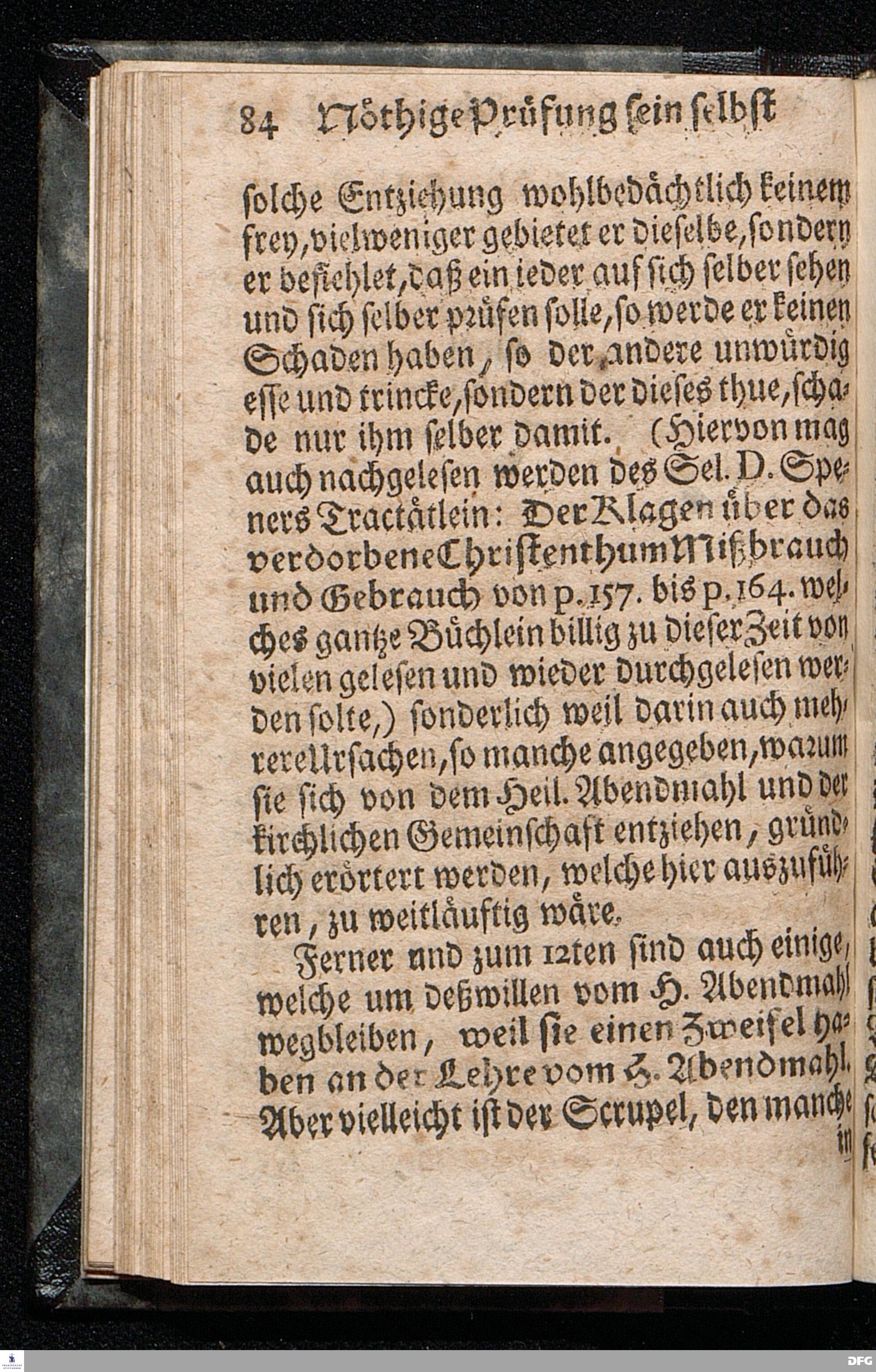 Die nöthige Prüfung sein selbst vor dem Gebrauch des Heiligen Abendmahls / Nach Anleitung der Epistol.Lection 1.Cor.IX [vielm.XI !], v.23 u.s.f. An dem so genannten Grünen Donnerstage Anno 1712. In der St.Georgen Kirche zu Glaucha an Halle vorgestellet, Und insonderheit mit zu einem Unterricht für diejenige, so sich aus mancherley Ursachen vom H.Abendmahl enthalten, gerichtet von August Hermann Francken / S.Th.P.O. & Past.zu St.Ulrich, u. des Gymn.Schol. Die fünfte Edition. Dabey ein Anhang von der unterschiedenen Beschaffenheit der würdigen Communicanten vom Autore zu Nürnberg vorgestellet den 6ten Mart. anno 1718. Der Jugend in den Schulen des Wäysen=Hauses nach gehaltenem Herbst=Examine ausgetheilet. HALLE, in Verlegung des Wäysenhauses, 1728.